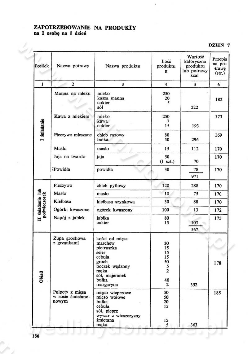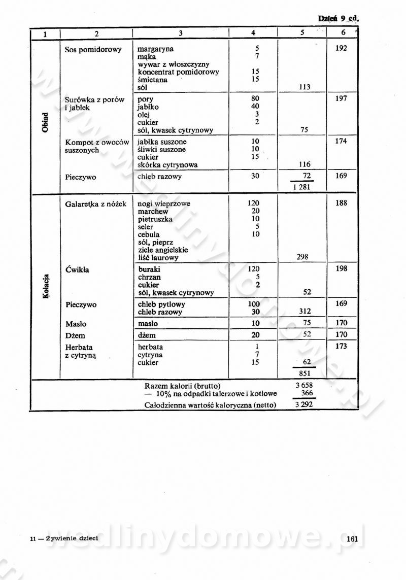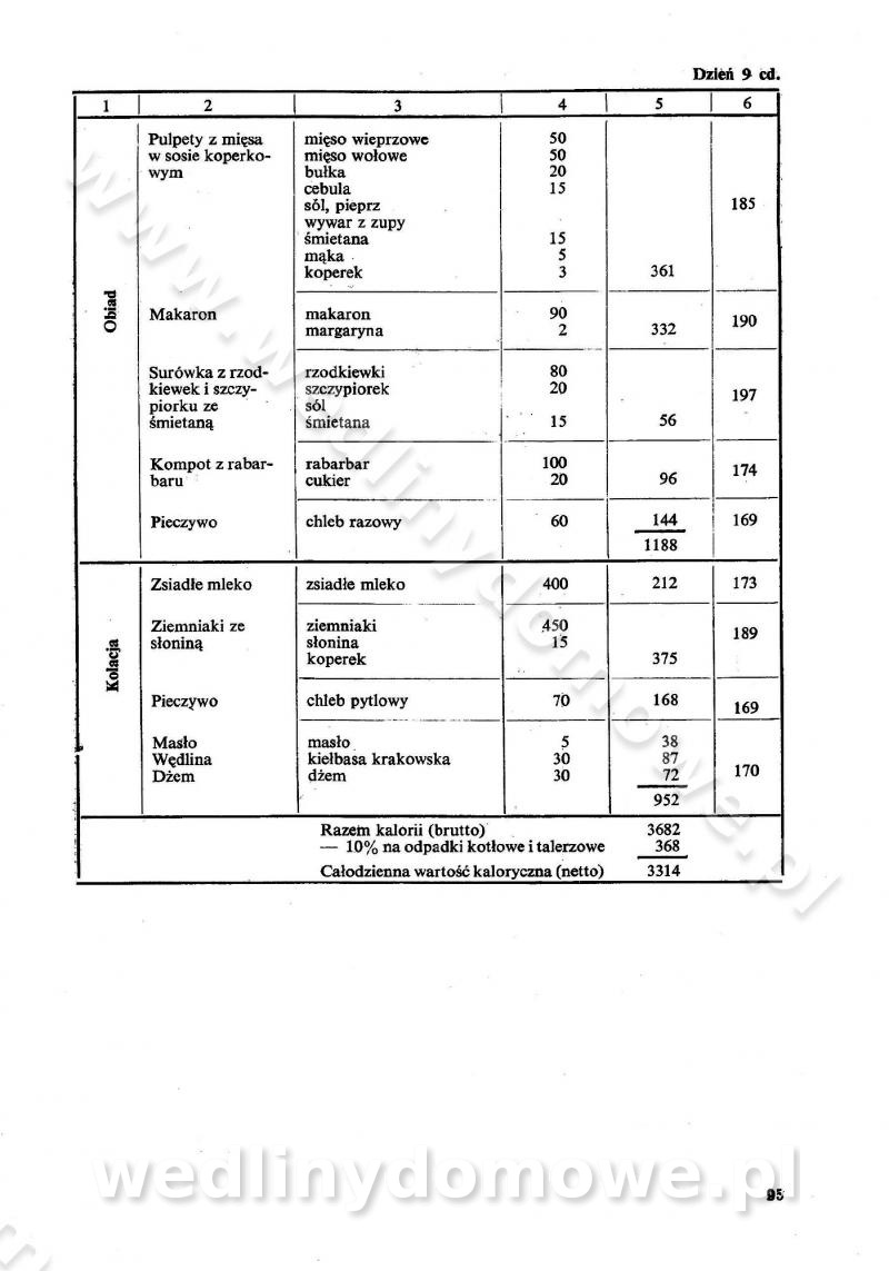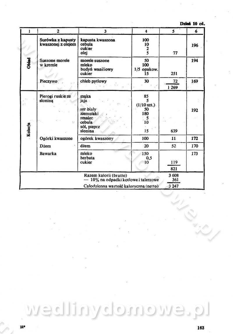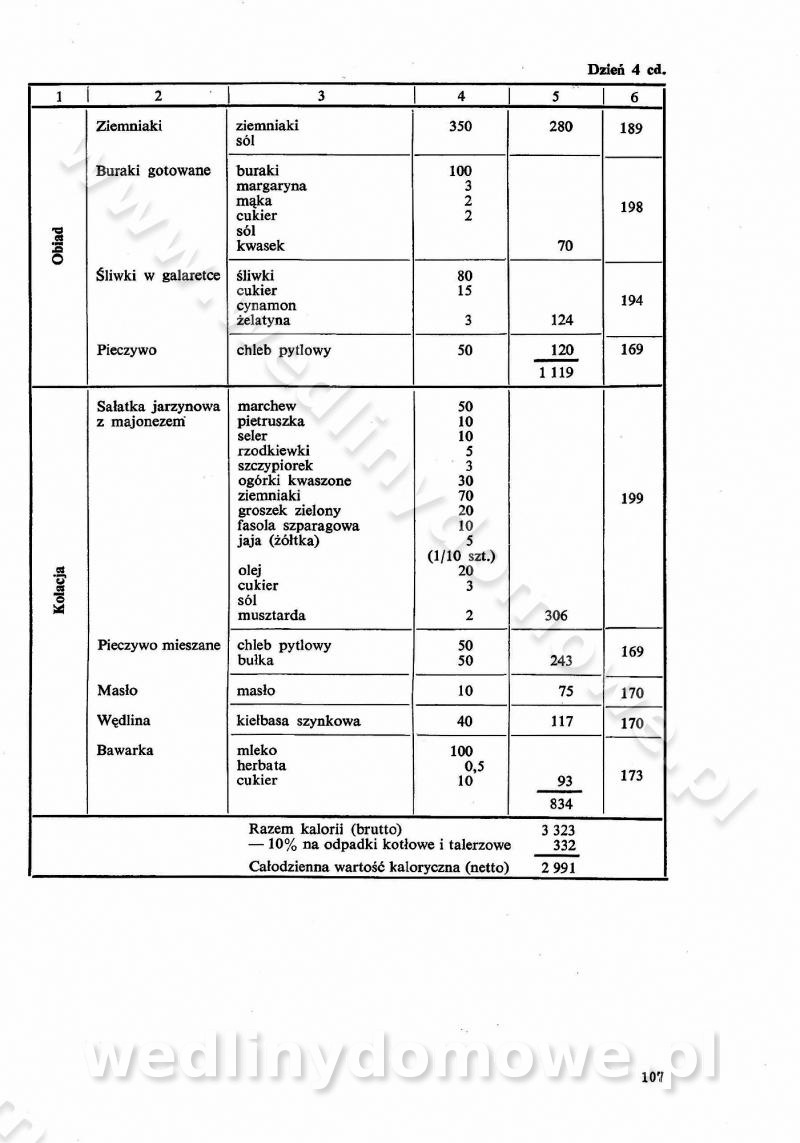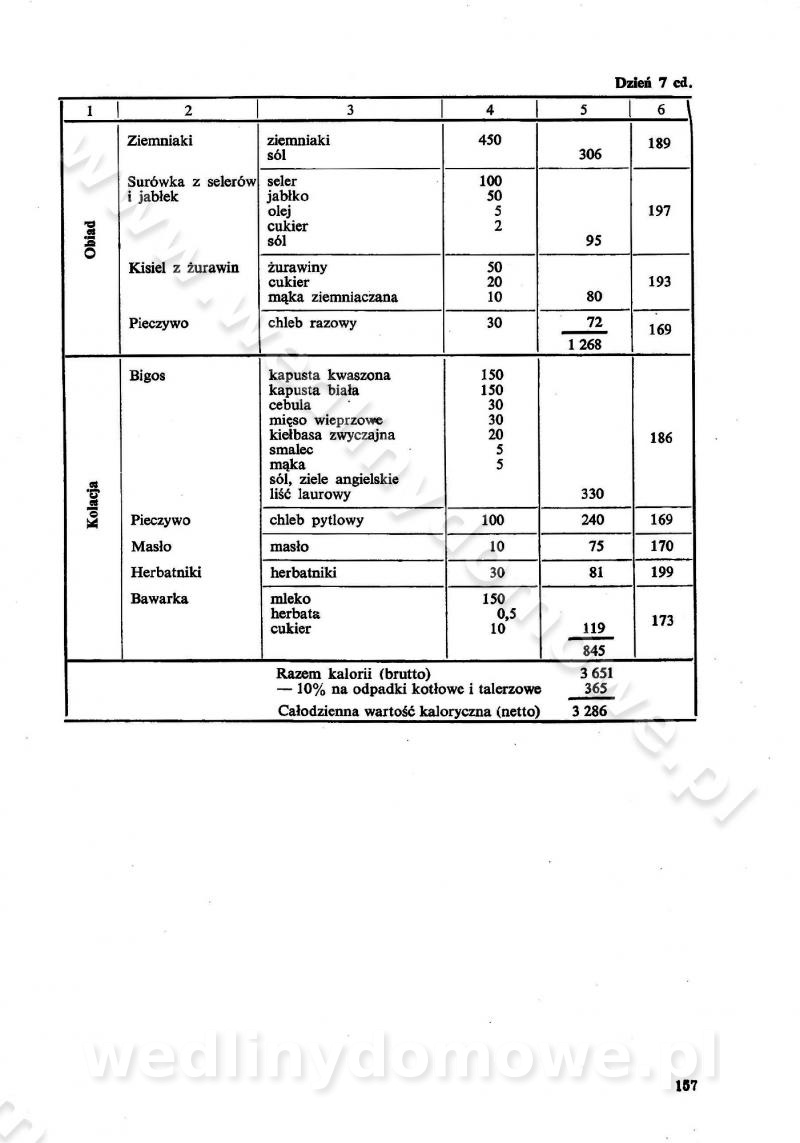 SPIS TREŚCI CZĘŚĆ I TEORETYCZNE PODSTAWY RACJONALNEGO ŻYWIENIA ZBIOROWEGO inż. Krystyna Wolf I. WSKAZÓWKI DO REALIZACJI NORM ŻYWIENIA WYRAŻONYCH W CAŁODZIENNYCH RACJACH POKARMOWYCH II. SKŁADNIKI POKARMOWE I ICH ROLA W ŻYWIENIU Zawartość składników pokarmowych w produktach Rola pożywienia Składniki pokarmowe Wzajemne zależności między składnikami pokarmowymi III. NORMY WYŻYWIENIA Normy zapotrzebowania na składniki pokarmowe Podział produktów Podział produktów na 2 grupy Podział produktów na 9 grup Podział produktów na 12 grup Całodzienne racje pokarmowe Zamiana produktów IV. WYTYCZNE PLANOWANIA ZESTAWU CAŁODZIENNYCH POSIŁKÓW Zasady podziału całodziennych racji pokarmowych na poszczególne posiłki Śniadanie Obiad Kolacja Wytyczne układania jadłospisów Kontrola prawidłowości planowania jadłospisów V. PROCESY TECHNOLOGICZNE, ICH CEL, PRZEBIEG I WPŁYW NA WARTOŚĆ ODŻYWCZĄ POTRAW Cel procesu technologicznego Obróbka wstępna i termiczna Ogólne wskazówki technologiczne Wykończanie potraw VI. WSKAZÓWKI PRAKTYCZNE DOTYCZĄCE KORZYSTANIA Z RECEPTUR CZĘŚĆ II RECEPTURY I. ZUPY inż. Jadwiga Celczyńska Podstawowe zasady sporządzania Sporządzanie wywarów Podział zup Przygotowanie głównych składników zup Wykończanie zup Rodzaje zup Zupy czyste Zupy zabielane Zupy zasmażane Zupy rozklejane Zupy mleczne Zupy owocowe Zupy z wkładką pełnowartościowego białka — samodzielne dania obiadowe lub kolacyjne Zupy czyste (normatyw surowcowy na 10 porcji) Zakwas burakowy na barszcz Zakwas na żur Barszcz burakowy czysty Barszcz czerwony czysty z zagęszczonego soku buraczanego Barszcz burakowy jarski Bulion jarski Rosół z wołowiny Zupa grzybowa czysta Zupa pomidorowa czysta Zupy rozklejane (normatyw surowcowy na 10 porcji) Krupnik na podrobach Krupnik zabielany Krupnik ze słoniną Krupnik z ryżu z jarzynami Zupa grochowa z pęczakiem Zupa grochowa z ziemniakami Zupa rumfordzka Zupa ziemniaczana z fasolą Zalewajka Zalewajka z kwaśnym mlekiem Żur z kiełbasą i boczkiem Żur na podrobach zabielany Zupy zasmażane (normatyw surowcowy na 10 porcji) Kapuśniak z kwaszonej kapusty z papryką Kapuśniak mazurski z kwaszonej kapusty Kapuśniak ze słodkiej kapusty Kapuśniak ze słodkiej kapusty z jabłkami Kapuśniak z czerwonej kapusty Zacierka z ziemniakami Zupa cebulowa Zupa z dyni i pomidorów Zupa fasolowa z makaronem Zupa fasolowa z ziemniakami Zupa z flaków wołowych Zupa „garbure” Zupa grzybowa Zupa jarzynowa z papryką Zupa jarzynowa z fasolą Zupa jarzynowa (jesienna) Zupa jarzynowa z makaronem i serem Zupa z kaszy manny zasmażana Zupa neapolitańska Zupa pomidorowa zasmażana Zupa z porów Zupa z selerów Zupa ziemniaczana zasmażana Zupa ziemniaczana z pomidorami Zupy mleczne (normatyw surowcowy na 10 porcji) Kukurydzanka na mleku Manna na mleku Ryż na mleku Makaron na mleku Płatki owsiane na mleku Zupa z dyni na mleku z tartym ciastem Zupa „nic” Zupa mleczna z lanym ciastem Zupa ze zsiadłego mleka Zupy zabielane (normatyw surowcowy na 10 porcji) Barszcz czerwony zabielany Barszcz czerwony zabielany z suszu Barszcz ukraiński Barszcz czeski Barszcz z botwiną Barszcz jarski z botwiną Chłodnik z botwiną Chłodnik z botwiną na mleku Kapuśniak ze słodkiej kapusty zabielany Kapuśniak na głowiźnie Zupa z brukselki zabielana Zupa cytrynowa Zupa z fasolki szparagowej Zupa grzybowa zabielana Zupa kalafiorowa Zupa koperkowa Zupa ogórkowa Zupa pomidorowa Zupa rybna Zupa szczawiowa Zupa pieczarkowa Zupa ze szpinaku Zupa z młodych jarzyn zabielana Zupa jarzynowa zabielana z mrożonek Zupa ziemniaczana „Paysanne” Pejzanka z puree ziemniaczanym Zupa z młodych ziemniaków Zupa ziemniaczana z porami Zupa z zielonego groszku Zupy owocowe (normatyw surowcowy na 10 porcji) Chłodnik z czarnych jagód Chłodnik truskawkowy Zupa z czarnych jagód Zupa jabłkowa Zupa jabłkowa zabielana Zupa z jabłek i śliwek Zupa ze śliwek Zupa z owoców mieszanych Zupa owocowa z suszu jabłkowego i marmolady Zupa owocowa czysta Zupa z powideł śliwkowych Zupa rabarbarowa Zupa z suszonych śliwek Zupa truskawkowa Zupa z truskawek i rabarbaru Zupy z wkładką mięsną (normatyw surowcowy na 10 porcji) Barszcz małorosyjski na rosole z mięsem Barszcz z ziemniakami i serdelkami Grochówka z mięsem i ziemniakami Kapuśniak z kwaszonej kapusty z kiełbasą Kapuśniak ze słodkiej kapusty z pomidorami i mięsem Krupnik z ryżu na mięsie Krupnik na mięsie Pejzanka na żeberkach Zupa z fasolki szparagowej na mięsie Zupa fasolowa z mięsem i makaronem Zupa jarzynowa z mięsem Gulaszowa polewka Zupa koperkowa na mięsie Zupa ogórkowa z ziemniakami na mięsie Zupa pomidorowa z makaronem i mięsem Zupa z porów z ziemniakami i wątróbką Zupa wiosenna z jajami Zupa ziemniaczana z mięsem Żur z kiełbasą i ziemniakami II. POTRAWY MIĘSNE inż. Krystyna Wolf Podstawowe zasady sporządzania Zachowanie wartości odżywczej dań mięsnych Cechy prawidłowo przyrządzonego mięsa Przechowywanie Rozmrażanie mięsa Rozbiór tuszy zwierząt rzeźnych Obróbka wstępna Obróbka termiczna Potrawy z baraniny (normatyw surowcowy na 10 porcji) Potrawka z baraniny Kotlet barani mielony Kotlet barani mielony z ryżem Baranina w warzywach Ragout baranie Baranina duszona Potrawy z cielęciny (normatyw surowcowy na 10 porcji) Potrawka cielęca Pulpety cielęce Kotlet cielęcy mielony Klopsiki cielęce do sosów Sznycel cielęcy (mielony) Filet cielęcy (do sosów i dodatków) Zrazy cielęce bite (do sosów) Zrazy cielęce nadziewane słoniną Sznycel cielęcy Zrazy cielęce po polsku (faszerowane) Paprykarz cielęcy Pieczeń cielęca duszona Pieczeń cielęca Mostek cielęcy po wiedeńsku Mostek cielęcy faszerowany Rolada cielęca faszerowana Potrawy z wieprzowiny (normatyw surowcowy na 10 porcji) Mięso wieprzowe gotowane Peklówka wieprzowa gotowana Filet wieprzowy saute Kotlet wieprzowy mielony Zraz wieprzowy (klopsik) mielony do sosów Kotlet miel