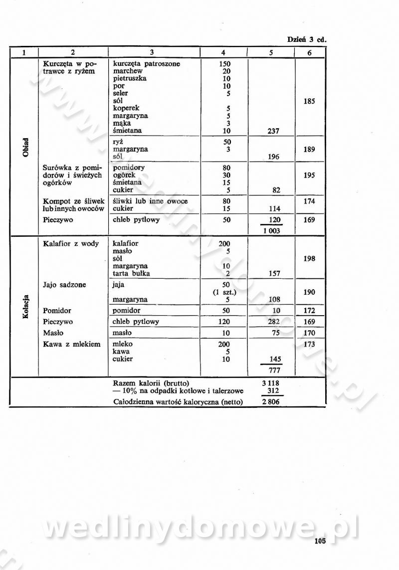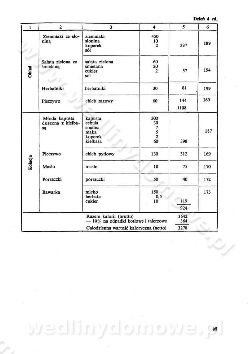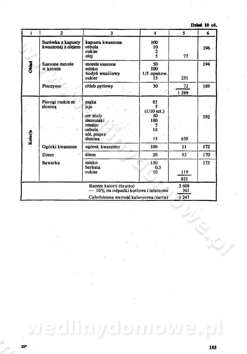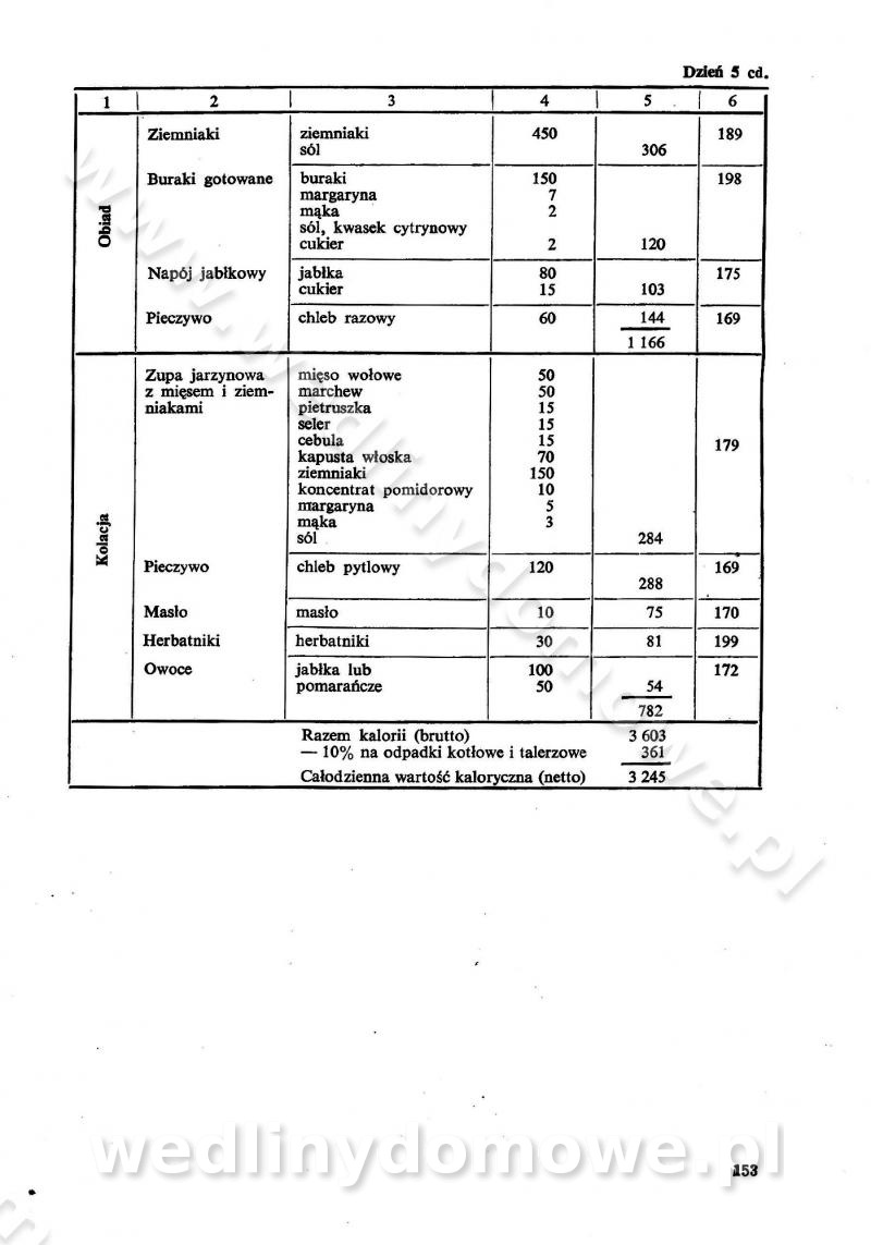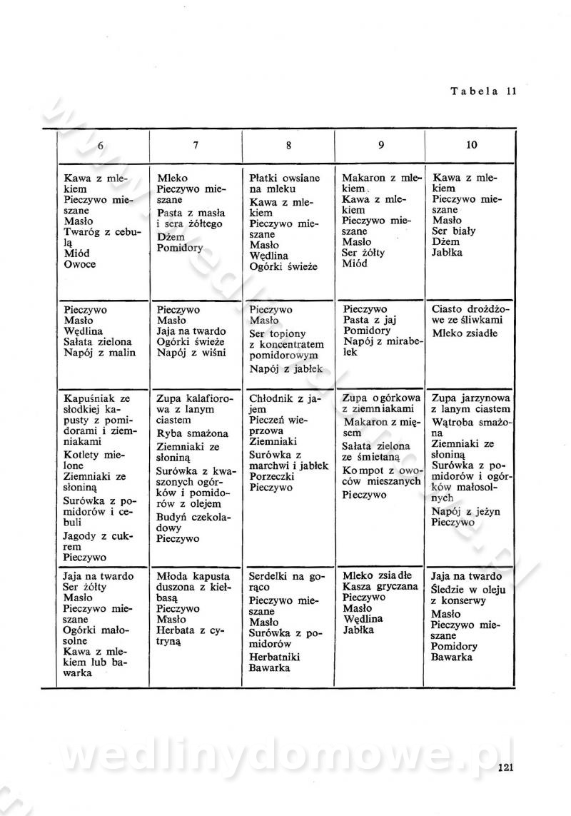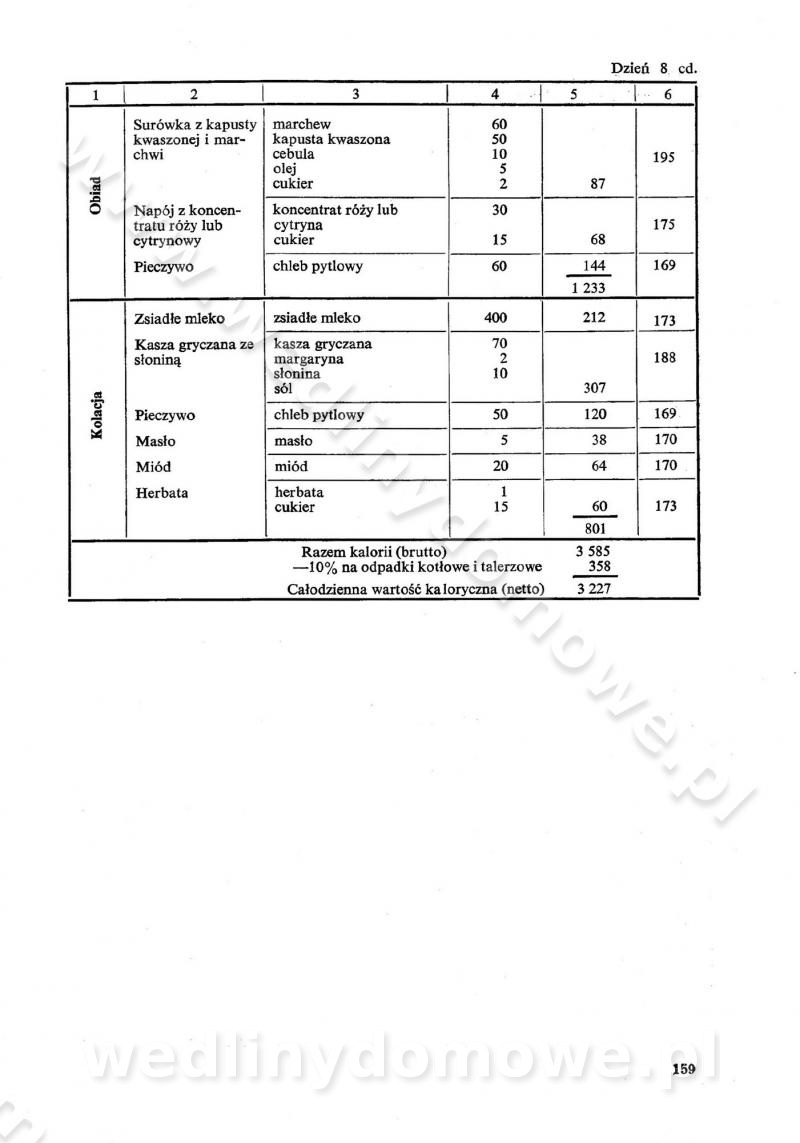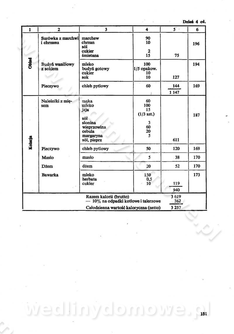SPIS TREŚCI CZĘŚĆ I TEORETYCZNE PODSTAWY RACJONALNEGO ŻYWIENIA ZBIOROWEGO inż. Krystyna Wolf I. WSKAZÓWKI DO REALIZACJI NORM ŻYWIENIA WYRAŻONYCH W CAŁODZIENNYCH RACJACH POKARMOWYCH II. SKŁADNIKI POKARMOWE I ICH ROLA W ŻYWIENIU Zawartość składników pokarmowych w produktach Rola pożywienia Składniki pokarmowe Wzajemne zależności między składnikami pokarmowymi III. NORMY WYŻYWIENIA Normy zapotrzebowania na składniki pokarmowe Podział produktów Podział produktów na 2 grupy Podział produktów na 9 grup Podział produktów na 12 grup Całodzienne racje pokarmowe Zamiana produktów IV. WYTYCZNE PLANOWANIA ZESTAWU CAŁODZIENNYCH POSIŁKÓW Zasady podziału całodziennych racji pokarmowych na poszczególne posiłki Śniadanie Obiad Kolacja Wytyczne układania jadłospisów Kontrola prawidłowości planowania jadłospisów V. PROCESY TECHNOLOGICZNE, ICH CEL, PRZEBIEG I WPŁYW NA WARTOŚĆ ODŻYWCZĄ POTRAW Cel procesu technologicznego Obróbka wstępna i termiczna Ogólne wskazówki technologiczne Wykończanie potraw VI. WSKAZÓWKI PRAKTYCZNE DOTYCZĄCE KORZYSTANIA Z RECEPTUR CZĘŚĆ II RECEPTURY I. ZUPY inż. Jadwiga Celczyńska Podstawowe zasady sporządzania Sporządzanie wywarów Podział zup Przygotowanie głównych składników zup Wykończanie zup Rodzaje zup Zupy czyste Zupy zabielane Zupy zasmażane Zupy rozklejane Zupy mleczne Zupy owocowe Zupy z wkładką pełnowartościowego białka — samodzielne dania obiadowe lub kolacyjne Zupy czyste (normatyw surowcowy na 10 porcji) Zakwas burakowy na barszcz Zakwas na żur Barszcz burakowy czysty Barszcz czerwony czysty z zagęszczonego soku buraczanego Barszcz burakowy jarski Bulion jarski Rosół z wołowiny Zupa grzybowa czysta Zupa pomidorowa czysta Zupy rozklejane (normatyw surowcowy na 10 porcji) Krupnik na podrobach Krupnik zabielany Krupnik ze słoniną Krupnik z ryżu z jarzynami Zupa grochowa z pęczakiem Zupa grochowa z ziemniakami Zupa rumfordzka Zupa ziemniaczana z fasolą Zalewajka Zalewajka z kwaśnym mlekiem Żur z kiełbasą i boczkiem Żur na podrobach zabielany Zupy zasmażane (normatyw surowcowy na 10 porcji) Kapuśniak z kwaszonej kapusty z papryką Kapuśniak mazurski z kwaszonej kapusty Kapuśniak ze słodkiej kapusty Kapuśniak ze słodkiej kapusty z jabłkami Kapuśniak z czerwonej kapusty Zacierka z ziemniakami Zupa cebulowa Zupa z dyni i pomidorów Zupa fasolowa z makaronem Zupa fasolowa z ziemniakami Zupa z flaków wołowych Zupa „garbure” Zupa grzybowa Zupa jarzynowa z papryką Zupa jarzynowa z fasolą Zupa jarzynowa (jesienna) Zupa jarzynowa z makaronem i serem Zupa z kaszy manny zasmażana Zupa neapolitańska Zupa pomidorowa zasmażana Zupa z porów Zupa z selerów Zupa ziemniaczana zasmażana Zupa ziemniaczana z pomidorami Zupy mleczne (normatyw surowcowy na 10 porcji) Kukurydzanka na mleku Manna na mleku Ryż na mleku Makaron na mleku Płatki owsiane na mleku Zupa z dyni na mleku z tartym ciastem Zupa „nic” Zupa mleczna z lanym ciastem Zupa ze zsiadłego mleka Zupy zabielane (normatyw surowcowy na 10 porcji) Barszcz czerwony zabielany Barszcz czerwony zabielany z suszu Barszcz ukraiński Barszcz czeski Barszcz z botwiną Barszcz jarski z botwiną Chłodnik z botwiną Chłodnik z botwiną na mleku Kapuśniak ze słodkiej kapusty zabielany Kapuśniak na głowiźnie Zupa z brukselki zabielana Zupa cytrynowa Zupa z fasolki szparagowej Zupa grzybowa zabielana Zupa kalafiorowa Zupa koperkowa Zupa ogórkowa Zupa pomidorowa Zupa rybna Zupa szczawiowa Zupa pieczarkowa Zupa ze szpinaku Zupa z młodych jarzyn zabielana Zupa jarzynowa zabielana z mrożonek Zupa ziemniaczana „Paysanne” Pejzanka z puree ziemniaczanym Zupa z młodych ziemniaków Zupa ziemniaczana z porami Zupa z zielonego groszku Zupy owocowe (normatyw surowcowy na 10 porcji) Chłodnik z czarnych jagód Chłodnik truskawkowy Zupa z czarnych jagód Zupa jabłkowa Zupa jabłkowa zabielana Zupa z jabłek i śliwek Zupa ze śliwek Zupa z owoców mieszanych Zupa owocowa z suszu jabłkowego i marmolady Zupa owocowa czysta Zupa z powideł śliwkowych Zupa rabarbarowa Zupa z suszonych śliwek Zupa truskawkowa Zupa z truskawek i rabarbaru Zupy z wkładką mięsną (normatyw surowcowy na 10 porcji) Barszcz małorosyjski na rosole z mięsem Barszcz z ziemniakami i serdelkami Grochówka z mięsem i ziemniakami Kapuśniak z kwaszonej kapusty z kiełbasą Kapuśniak ze słodkiej kapusty z pomidorami i mięsem Krupnik z ryżu na mięsie Krupnik na mięsie Pejzanka na żeberkach Zupa z fasolki szparagowej na mięsie Zupa fasolowa z mięsem i makaronem Zupa jarzynowa z mięsem Gulaszowa polewka Zupa koperkowa na mięsie Zupa ogórkowa z ziemniakami na mięsie Zupa pomidorowa z makaronem i mięsem Zupa z porów z ziemniakami i wątróbką Zupa wiosenna z jajami Zupa ziemniaczana z mięsem Żur z kiełbasą i ziemniakami II. POTRAWY MIĘSNE inż. Krystyna Wolf Podstawowe zasady sporządzania Zachowanie wartości odżywczej dań mięsnych Cechy prawidłowo przyrządzonego mięsa Przechowywanie Rozmrażanie mięsa Rozbiór tuszy zwierząt rzeźnych Obróbka wstępna Obróbka termiczna Potrawy z baraniny (normatyw surowcowy na 10 porcji) Potrawka z baraniny Kotlet barani mielony Kotlet barani mielony z ryżem Baranina w warzywach Ragout baranie Baranina duszona Potrawy z cielęciny (normatyw surowcowy na 10 porcji) Potrawka cielęca Pulpety cielęce Kotlet cielęcy mielony Klopsiki cielęce do sosów Sznycel cielęcy (mielony) Filet cielęcy (do sosów i dodatków) Zrazy cielęce bite (do sosów) Zrazy cielęce nadziewane słoniną Sznycel cielęcy Zrazy cielęce po polsku (faszerowane) Paprykarz cielęcy Pieczeń cielęca duszona Pieczeń cielęca Mostek cielęcy po wiedeńsku Mostek cielęcy faszerowany Rolada cielęca faszerowana Potrawy z wieprzowiny (normatyw surowcowy na 10 porcji) Mięso wieprzowe gotowane Peklówka wieprzowa gotowana Filet wieprzowy saute Kotlet wieprzowy mielony Zraz wieprzowy (klopsik) mielony do sosów Kotlet miel