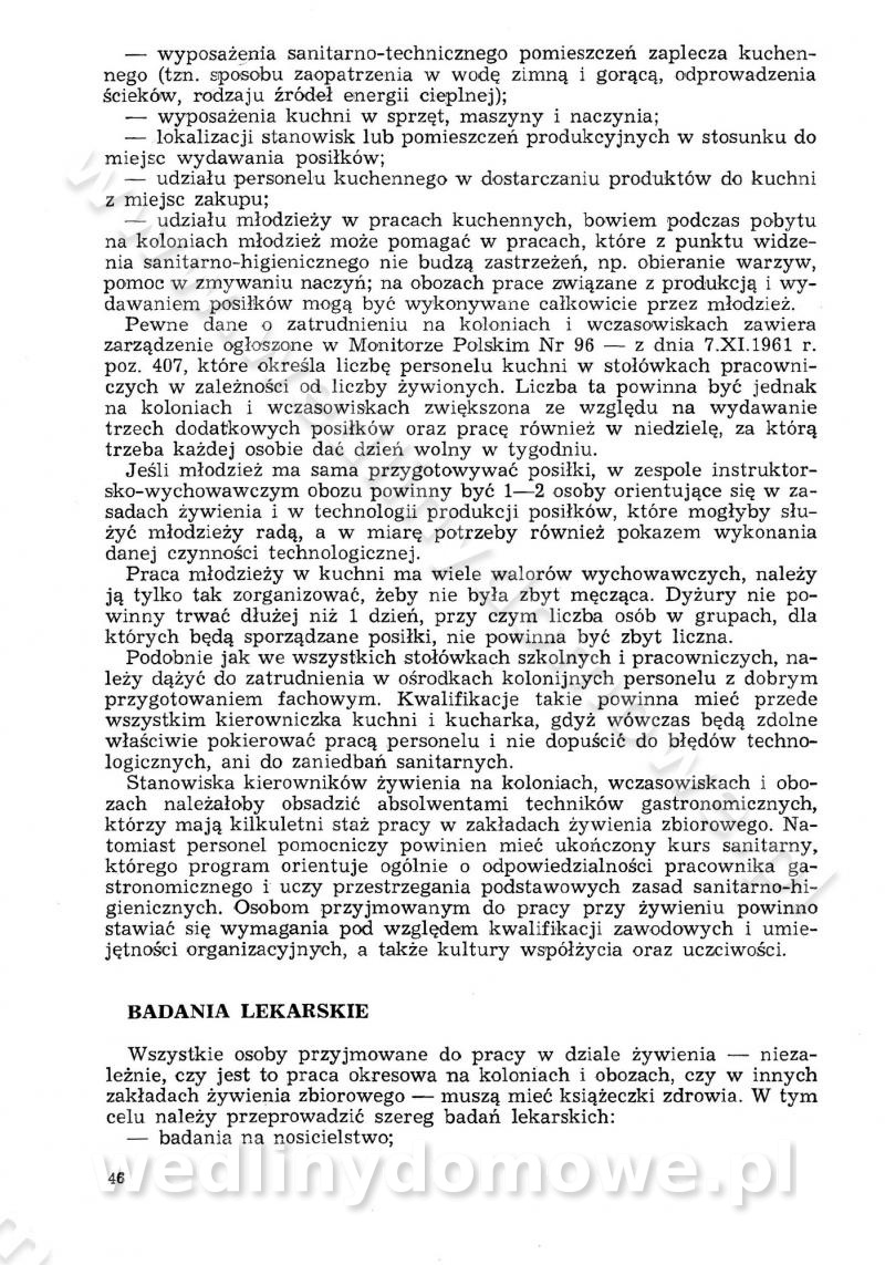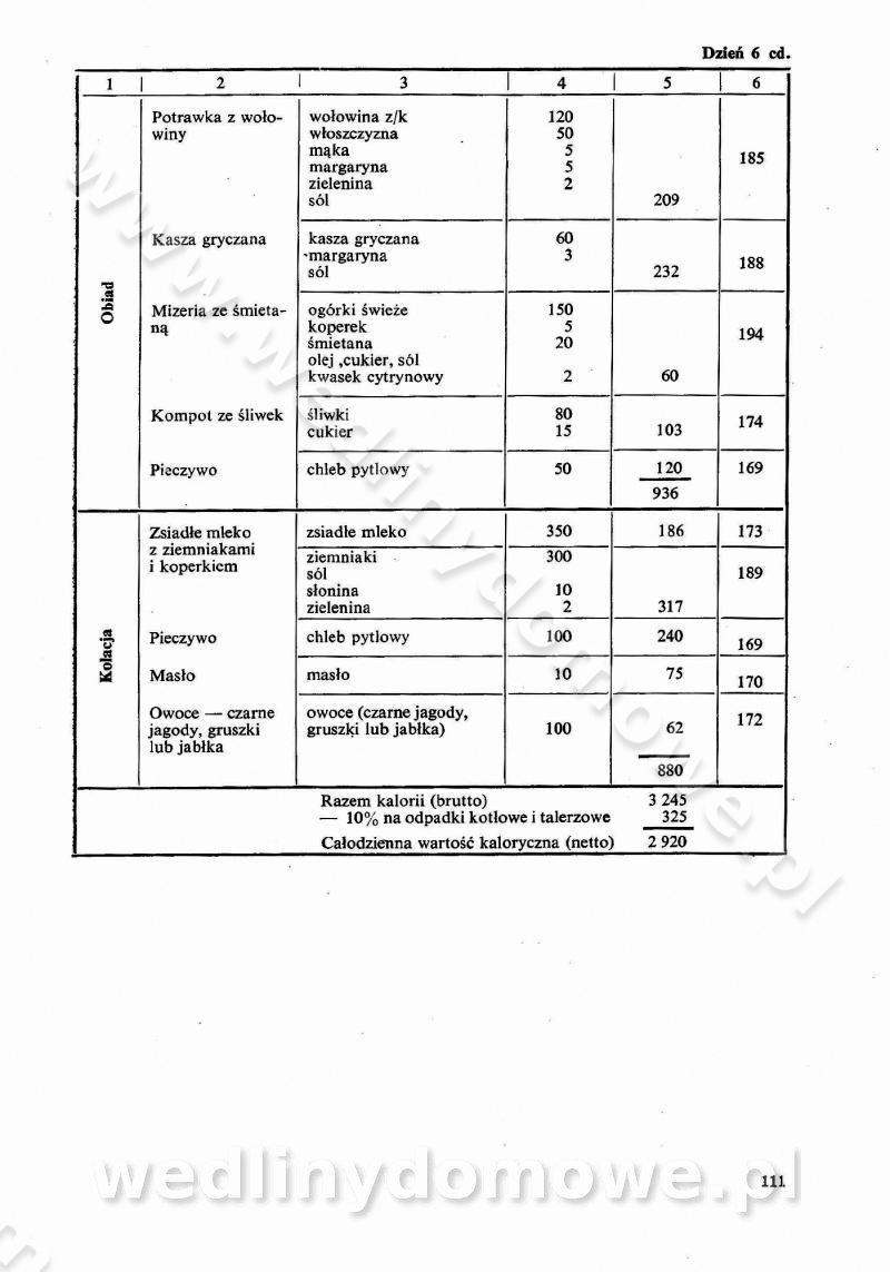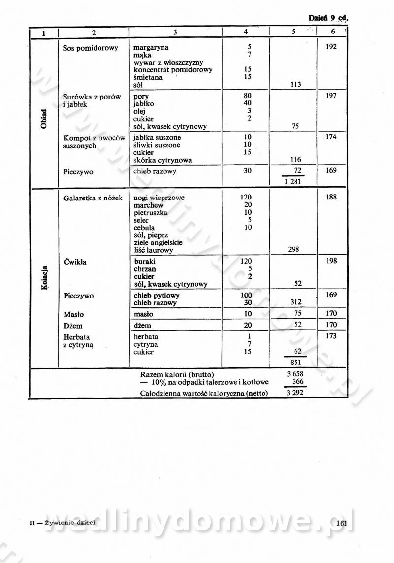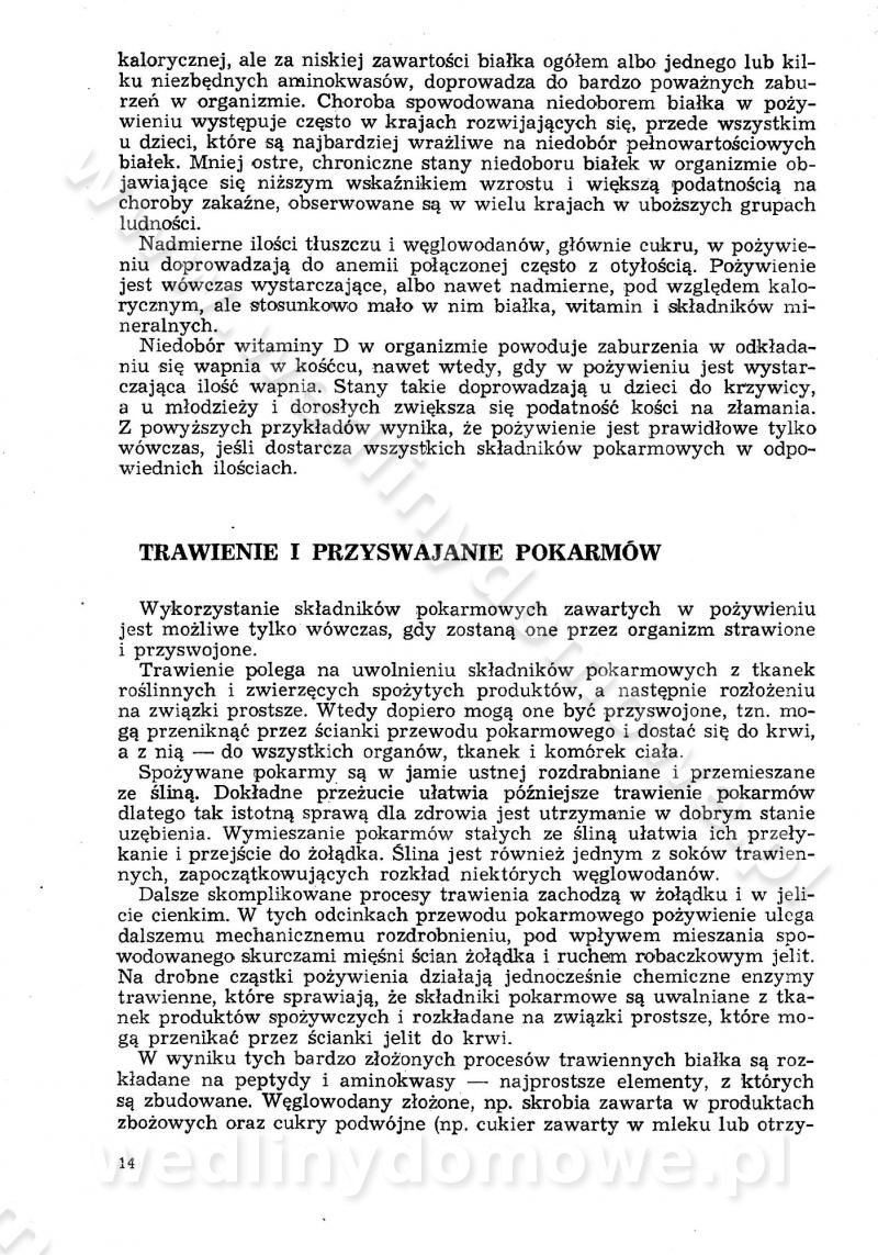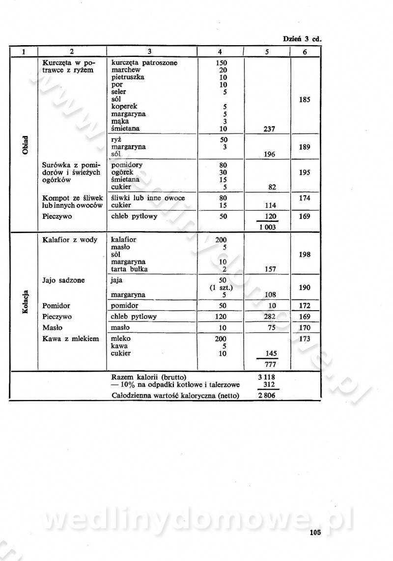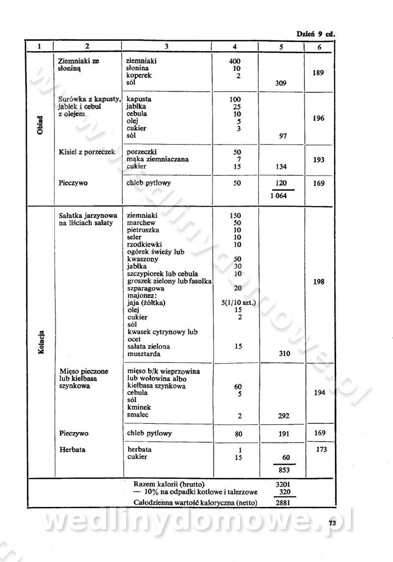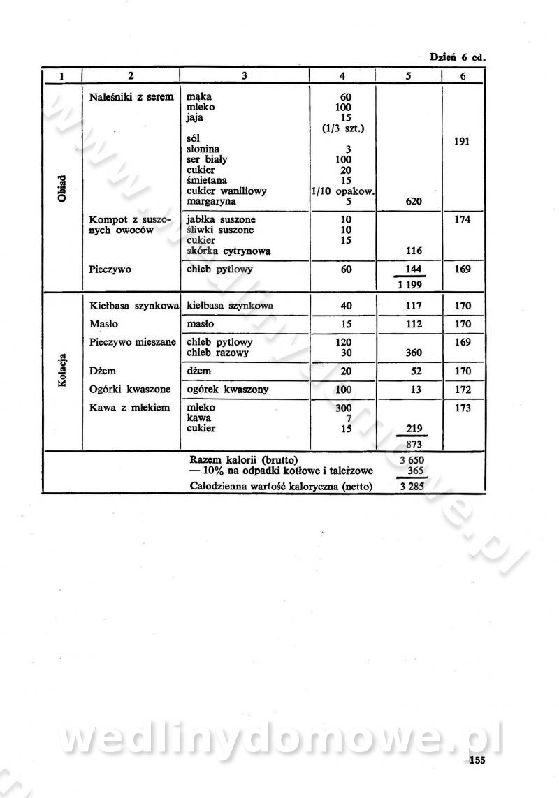 SPIS TREŚCI CZĘŚĆ I TEORETYCZNE PODSTAWY RACJONALNEGO ŻYWIENIA ZBIOROWEGO inż. Krystyna Wolf I. WSKAZÓWKI DO REALIZACJI NORM ŻYWIENIA WYRAŻONYCH W CAŁODZIENNYCH RACJACH POKARMOWYCH II. SKŁADNIKI POKARMOWE I ICH ROLA W ŻYWIENIU Zawartość składników pokarmowych w produktach Rola pożywienia Składniki pokarmowe Wzajemne zależności między składnikami pokarmowymi III. NORMY WYŻYWIENIA Normy zapotrzebowania na składniki pokarmowe Podział produktów Podział produktów na 2 grupy Podział produktów na 9 grup Podział produktów na 12 grup Całodzienne racje pokarmowe Zamiana produktów IV. WYTYCZNE PLANOWANIA ZESTAWU CAŁODZIENNYCH POSIŁKÓW Zasady podziału całodziennych racji pokarmowych na poszczególne posiłki Śniadanie Obiad Kolacja Wytyczne układania jadłospisów Kontrola prawidłowości planowania jadłospisów V. PROCESY TECHNOLOGICZNE, ICH CEL, PRZEBIEG I WPŁYW NA WARTOŚĆ ODŻYWCZĄ POTRAW Cel procesu technologicznego Obróbka wstępna i termiczna Ogólne wskazówki technologiczne Wykończanie potraw VI. WSKAZÓWKI PRAKTYCZNE DOTYCZĄCE KORZYSTANIA Z RECEPTUR CZĘŚĆ II RECEPTURY I. ZUPY inż. Jadwiga Celczyńska Podstawowe zasady sporządzania Sporządzanie wywarów Podział zup Przygotowanie głównych składników zup Wykończanie zup Rodzaje zup Zupy czyste Zupy zabielane Zupy zasmażane Zupy rozklejane Zupy mleczne Zupy owocowe Zupy z wkładką pełnowartościowego białka — samodzielne dania obiadowe lub kolacyjne Zupy czyste (normatyw surowcowy na 10 porcji) Zakwas burakowy na barszcz Zakwas na żur Barszcz burakowy czysty Barszcz czerwony czysty z zagęszczonego soku buraczanego Barszcz burakowy jarski Bulion jarski Rosół z wołowiny Zupa grzybowa czysta Zupa pomidorowa czysta Zupy rozklejane (normatyw surowcowy na 10 porcji) Krupnik na podrobach Krupnik zabielany Krupnik ze słoniną Krupnik z ryżu z jarzynami Zupa grochowa z pęczakiem Zupa grochowa z ziemniakami Zupa rumfordzka Zupa ziemniaczana z fasolą Zalewajka Zalewajka z kwaśnym mlekiem Żur z kiełbasą i boczkiem Żur na podrobach zabielany Zupy zasmażane (normatyw surowcowy na 10 porcji) Kapuśniak z kwaszonej kapusty z papryką Kapuśniak mazurski z kwaszonej kapusty Kapuśniak ze słodkiej kapusty Kapuśniak ze słodkiej kapusty z jabłkami Kapuśniak z czerwonej kapusty Zacierka z ziemniakami Zupa cebulowa Zupa z dyni i pomidorów Zupa fasolowa z makaronem Zupa fasolowa z ziemniakami Zupa z flaków wołowych Zupa „garbure” Zupa grzybowa Zupa jarzynowa z papryką Zupa jarzynowa z fasolą Zupa jarzynowa (jesienna) Zupa jarzynowa z makaronem i serem Zupa z kaszy manny zasmażana Zupa neapolitańska Zupa pomidorowa zasmażana Zupa z porów Zupa z selerów Zupa ziemniaczana zasmażana Zupa ziemniaczana z pomidorami Zupy mleczne (normatyw surowcowy na 10 porcji) Kukurydzanka na mleku Manna na mleku Ryż na mleku Makaron na mleku Płatki owsiane na mleku Zupa z dyni na mleku z tartym ciastem Zupa „nic” Zupa mleczna z lanym ciastem Zupa ze zsiadłego mleka Zupy zabielane (normatyw surowcowy na 10 porcji) Barszcz czerwony zabielany Barszcz czerwony zabielany z suszu Barszcz ukraiński Barszcz czeski Barszcz z botwiną Barszcz jarski z botwiną Chłodnik z botwiną Chłodnik z botwiną na mleku Kapuśniak ze słodkiej kapusty zabielany Kapuśniak na głowiźnie Zupa z brukselki zabielana Zupa cytrynowa Zupa z fasolki szparagowej Zupa grzybowa zabielana Zupa kalafiorowa Zupa koperkowa Zupa ogórkowa Zupa pomidorowa Zupa rybna Zupa szczawiowa Zupa pieczarkowa Zupa ze szpinaku Zupa z młodych jarzyn zabielana Zupa jarzynowa zabielana z mrożonek Zupa ziemniaczana „Paysanne” Pejzanka z puree ziemniaczanym Zupa z młodych ziemniaków Zupa ziemniaczana z porami Zupa z zielonego groszku Zupy owocowe (normatyw surowcowy na 10 porcji) Chłodnik z czarnych jagód Chłodnik truskawkowy Zupa z czarnych jagód Zupa jabłkowa Zupa jabłkowa zabielana Zupa z jabłek i śliwek Zupa ze śliwek Zupa z owoców mieszanych Zupa owocowa z suszu jabłkowego i marmolady Zupa owocowa czysta Zupa z powideł śliwkowych Zupa rabarbarowa Zupa z suszonych śliwek Zupa truskawkowa Zupa z truskawek i rabarbaru Zupy z wkładką mięsną (normatyw surowcowy na 10 porcji) Barszcz małorosyjski na rosole z mięsem Barszcz z ziemniakami i serdelkami Grochówka z mięsem i ziemniakami Kapuśniak z kwaszonej kapusty z kiełbasą Kapuśniak ze słodkiej kapusty z pomidorami i mięsem Krupnik z ryżu na mięsie Krupnik na mięsie Pejzanka na żeberkach Zupa z fasolki szparagowej na mięsie Zupa fasolowa z mięsem i makaronem Zupa jarzynowa z mięsem Gulaszowa polewka Zupa koperkowa na mięsie Zupa ogórkowa z ziemniakami na mięsie Zupa pomidorowa z makaronem i mięsem Zupa z porów z ziemniakami i wątróbką Zupa wiosenna z jajami Zupa ziemniaczana z mięsem Żur z kiełbasą i ziemniakami II. POTRAWY MIĘSNE inż. Krystyna Wolf Podstawowe zasady sporządzania Zachowanie wartości odżywczej dań mięsnych Cechy prawidłowo przyrządzonego mięsa Przechowywanie Rozmrażanie mięsa Rozbiór tuszy zwierząt rzeźnych Obróbka wstępna Obróbka termiczna Potrawy z baraniny (normatyw surowcowy na 10 porcji) Potrawka z baraniny Kotlet barani mielony Kotlet barani mielony z ryżem Baranina w warzywach Ragout baranie Baranina duszona Potrawy z cielęciny (normatyw surowcowy na 10 porcji) Potrawka cielęca Pulpety cielęce Kotlet cielęcy mielony Klopsiki cielęce do sosów Sznycel cielęcy (mielony) Filet cielęcy (do sosów i dodatków) Zrazy cielęce bite (do sosów) Zrazy cielęce nadziewane słoniną Sznycel cielęcy Zrazy cielęce po polsku (faszerowane) Paprykarz cielęcy Pieczeń cielęca duszona Pieczeń cielęca Mostek cielęcy po wiedeńsku Mostek cielęcy faszerowany Rolada cielęca faszerowana Potrawy z wieprzowiny (normatyw surowcowy na 10 porcji) Mięso wieprzowe gotowane Peklówka wieprzowa gotowana Filet wieprzowy saute Kotlet wieprzowy mielony Zraz wieprzowy (klopsik) mielony do sosów Kotlet miel