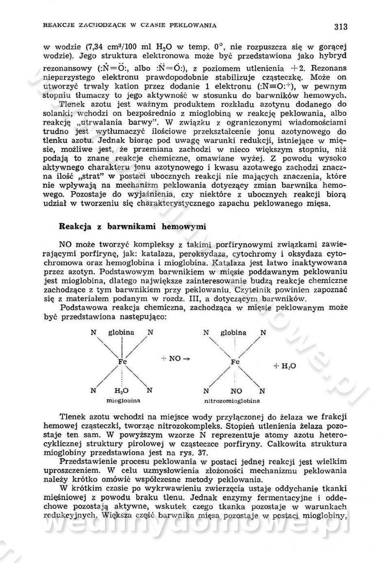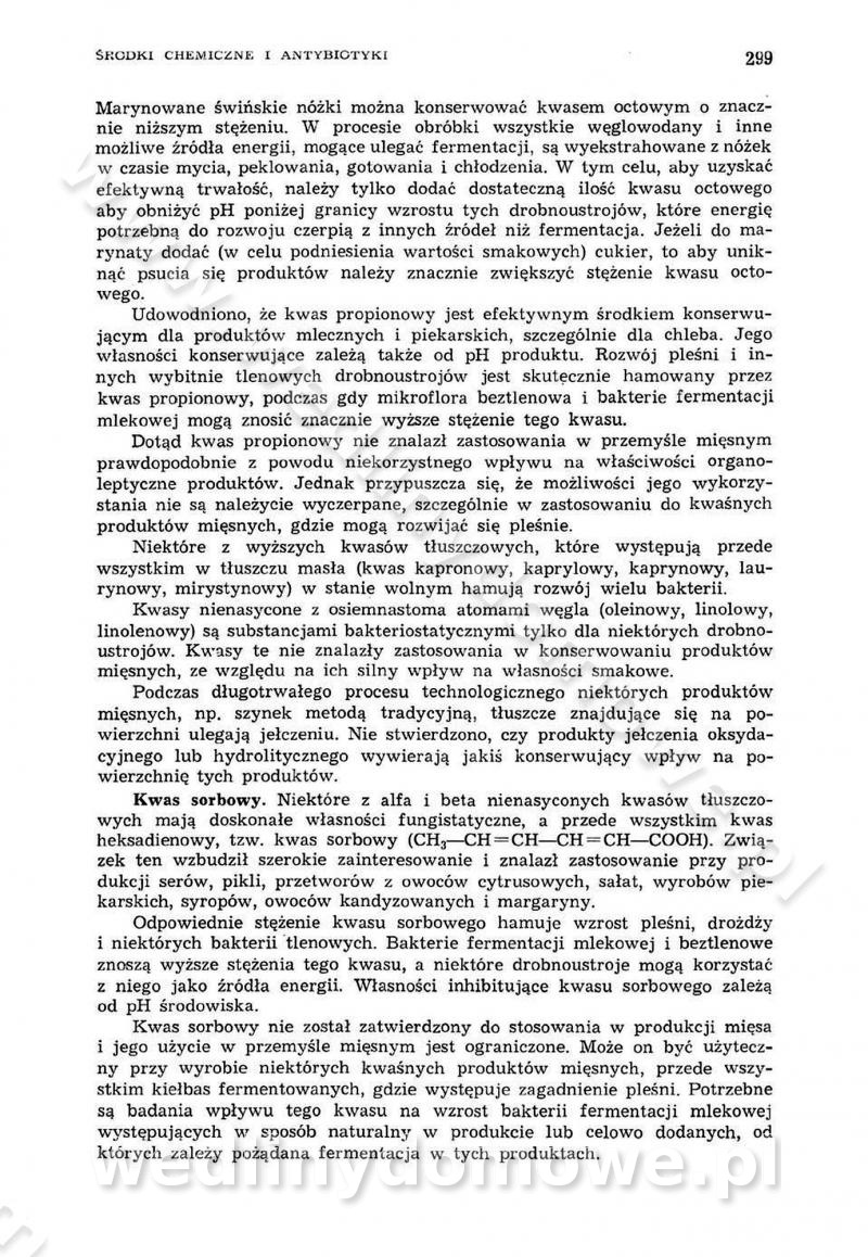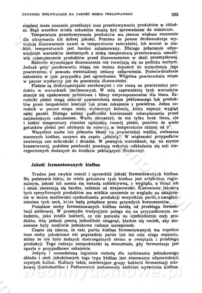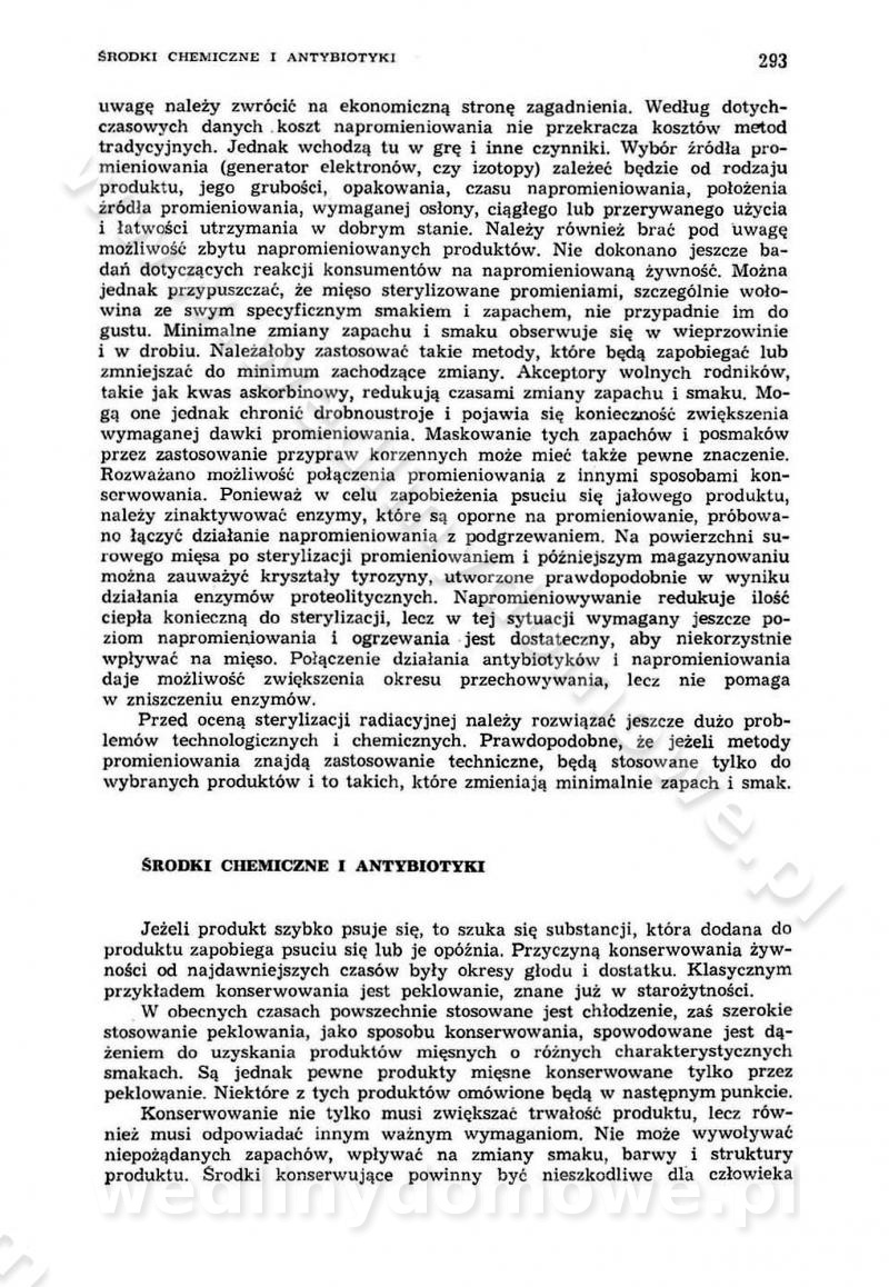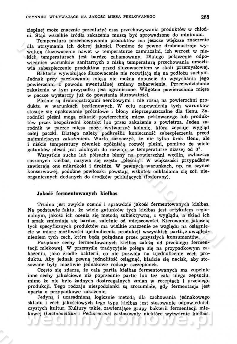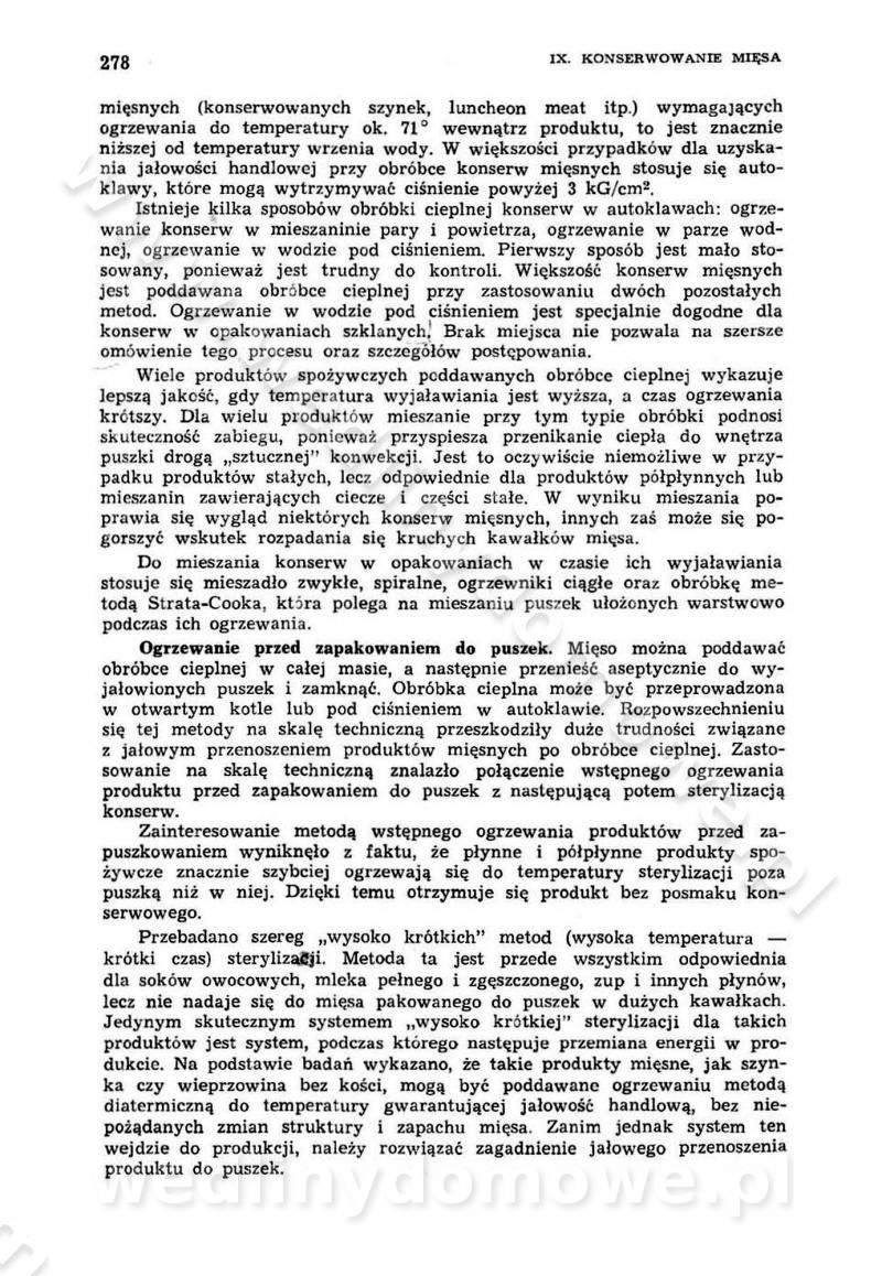 Urządzenia do wędzenia płynnymi preparatami dymu wędzarniczego Omówione wcześniej metody wytwarzania dymu wędzarniczego: tradycyjne, żarowe, cierne czy też parowe oraz sposoby doprowadzenia do komory czy rozprowadzenia dymu w komorze nie pozwalają na dokładną ocenę, jakie lotne produkty termicznego rozkładu materiału dymotwórczego i w jakich ilościach przedyfundują do produktu wędzonego. Możliwość taką daje zastosowanie preparatów dymu wędzarniczego o dokładnie określonym składzie chemicznym i stałym dla konkretnego preparatu. Preparat wędzący starannie dobiera się w zależności od tego, jakie cechy sensoryczne chcemy nadać wędzonej żywności. Podobnie jak dym wędzarniczy wytwarzany metodami tradycyjnymi, preparaty dymu wędzarniczego wykazują podobne właściwości barwiące, aromatyzujące, bakteriobójcze i antyoksydacyjne (Borys, 2005a). Sposób wytwarzania preparatów dymu wędzarniczego umożliwia uzyskanie preparatów niezawierających substancji smolistych, mutagennych i kancerogennych węglowodorów policyklicznych (Borys i Piotrowski, 1997; Pijanowski i in., 1996; Sikorski, 1980). Stwarza też możliwość nadawania im różnych aromatów dymnych o różnym stopniu kondensacji oraz wzbogacania o składniki mineralne, takie jak wapń, magnez, sód czy potas. Podstawowy skład chemiczny płynnego preparatu dymu wędzarniczego stanowią: woda 40-70%, kwas octowy 4-12%, kwas mrówkowy 0,5-3,5%, aldehyd glikolowy 1,7-5%, formaldehyd 0,5-12%, glioksal do 1,2%, acetol 2-5% i smoły do 12% (Borys, 2005, 2005a). Płynne preparaty dymu są w praktyce stosowane poprzez: rozpylanie w komorze wędzarniczej (tzw. atomizacja),natryskiwanie,zanurzanie,dodanie do mieszanki peklującej,bezpośrednie dodanie do farszu,odparowanie płynnego dymu na gorących powierzchniach komory wędzarniczej,powlekanie preparatem wędzarniczym wewnętrznych powierzchni sztucznych osłonek przetworów mięsnych.W przypadku rozpylania płynnego dymu ważne jest utrzymanie takich parametrów procesu, jak: odpowiednia koncentracja preparatu dymu,temperatura roztworu preparatu dymu,czas jego kontaktu z wędzonym produktem.Proces atomizacji polega na jednoczesnym podawaniu pod ciśnieniem 0,4 do 0,6 MPa do komory wędzarniczej mieszaniny płynnego dymu i powietrza. W komorze wędzarniczej tworzy się chmura aerozolu, którego cząstki fazy rozproszonej o średnicy 0,1-0,5 µm osiadają na powierzchni produktu i łatwiej dyfundują do jego wewnętrznych warstw. Proces atomizacji prowadzi się w szczelnych komorach wędzarniczych przy wyłączonej cyrkulacji powietrza. W trakcie pełnego cyklu wędzenia natrysk aerozolem następuje tuż po procesie podsuszania, czyli w momencie, gdy podczas tradycyjnego procesu wędzenia doprowadzany jest do komory świeży dym z generatora. Jest to etap procesu wędzenia w nowoczesnych komorach wędzarniczych i jako takim z łatwością steruje się automatycznie. O skuteczności procesu osiadania i dyfuzji preparatu decyduje wielkość cząstek fazy rozproszonej. Zaletami rozpylania płynnego dymu w urządzeniu wędzarniczym są: powtarzalność jakości wędzonego produktu,równomiernie rozłożony kolor oraz smak produktu po wędzeniu,zmniejszenie ubytku wagi produktu wędzonego o około 1-2%,obniżenie emisji dymu do środowiska,skrócenie czasu czyszczenia komór wędzarniczych, a w konsekwencji obniżenie kosztów procesu,wzrost wydajności urządzeń wędzarniczych,poprawa warunków higienicznych w wędzarni,mały koszt urządzeń do atomizacji i natrysku,zmniejszenie ryzyka powstania pożaru i wybuchu.Oprócz wymienionych już zalet zastosowania płynnego dymu przy rozpylaniu, procesy natryskiwania i zanurzania mają tę zaletę, że czas produkcji wędzonych wyrobów może zostać znacznie skrócony. Czas wędzenia skraca się o 1-2 min w stosunku do metod wędzenia dymem otrzymanym metodą termicznego rozkładu drewna. Metoda natryskowa polega na naniesieniu płynnego dymu, stosując dysze; w przypadku skraplania stosuje się sufitowy natrysk poprzez perforowane blachy. W małych zakładach proces natryskiwania prowadzi się ręcznie za pomocą pistoletu natryskowego. Po procesie natryskiwania nadmiar dymu odpływa z powrotem do zbiornika i jest ponownie wykorzystywany. Metoda immersyjna polega na zanurzaniu wędzonego produktu w roztworze wodnym preparatu dymu wędzarniczego. Kolejną metodą wytwarzania aerozolu jest odparowanie nakrapianego płynnego dymu na gorących powierzchniach komory wędzarniczej. Metodę tę cechuje równomierne rozprzestrzenianie dymu w komorze wędzarniczej. Współczesne metody nastrzykiwania surowców mięsnych solankami peklującymi umożliwiają dodanie preparatu dymu do roztworu wodnego mieszanki peklującej i wraz z nim wprowadzenie aromatu wędzarniczego do produktu. W celu uniknięcia reakcji ubocznych ze składnikami solanki peklującej stosuje się tylko takie produkty aromatów dymnych, które mają obojętne pH. Zastosowanie preparatów dymu w solance peklującej umożliwia równomierne aromatyzowanie wyrobów peklowanych na surowo. Przy produkcji wędlin preparaty dymu na bazie wody, oleju lub na nośnikach stałych (sól kuchenna) mogą być dodawane bezpośrednio do farszu. Jedną z nowszych metod jest stosowanie sztucznych osłonek do przetworów mięsnych z wewnętrzną warstwą powlekaną preparatem wędzarniczym. Z ekologicznego punktu widzenia metoda ta jest najbardziej przyjazna środowisku ze względu na brak zanieczyszczenia składnikami dymu powietrza oraz ścieków. Czas wędzenia decyduje o przejściu czynnika wędzarniczego z atmosfery wędzenia do wędzonego produktu i tym samym odgrywa ważną rolę przy przenikaniu dymu. Nowoczesne komory wędzarnicze można łatwo przestawić na proces wędzenia z zastosowaniem płynnego dymu. Warunkiem decydującym o skuteczności zastosowania płynnego dymu jest możliwość całkowitego zamknięcia urządzenia wędzarniczego. Tak samo jak w p