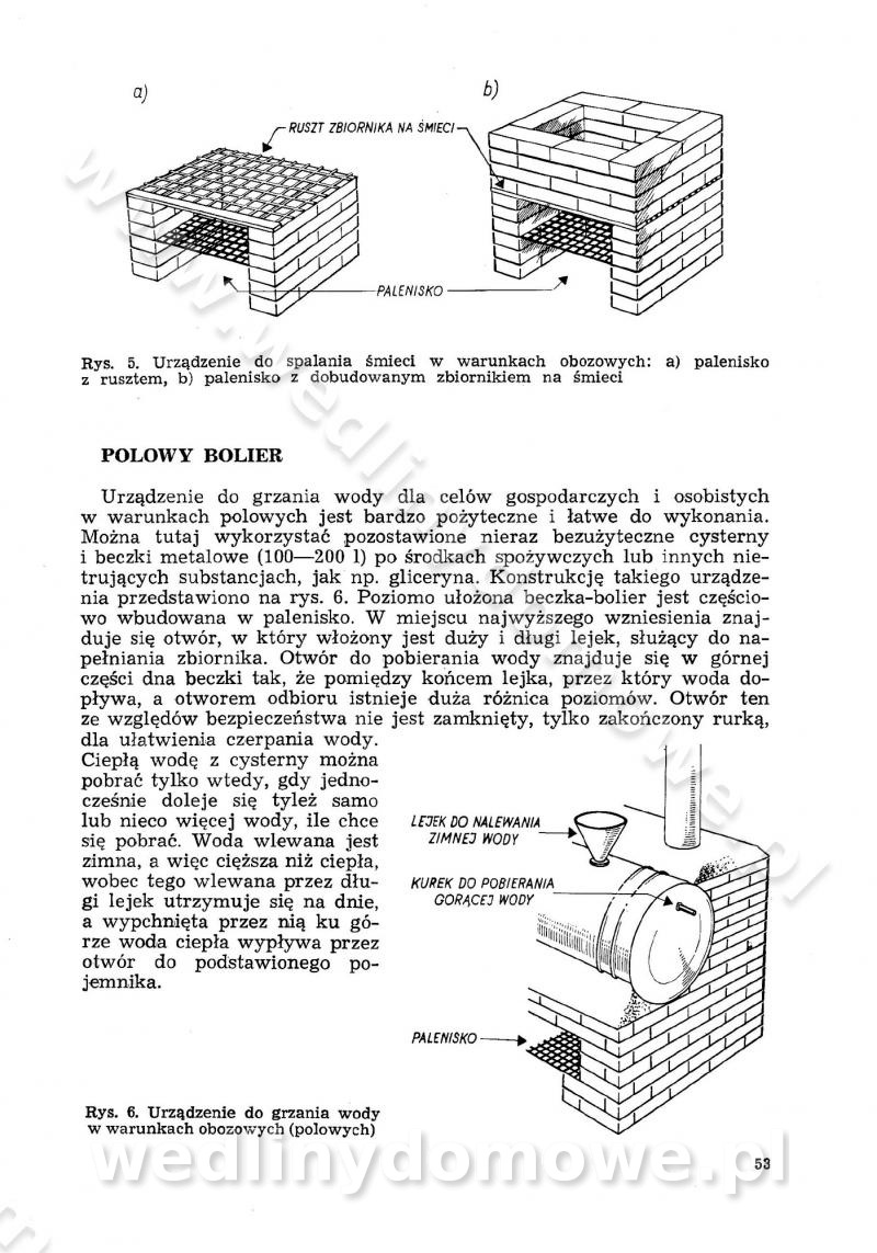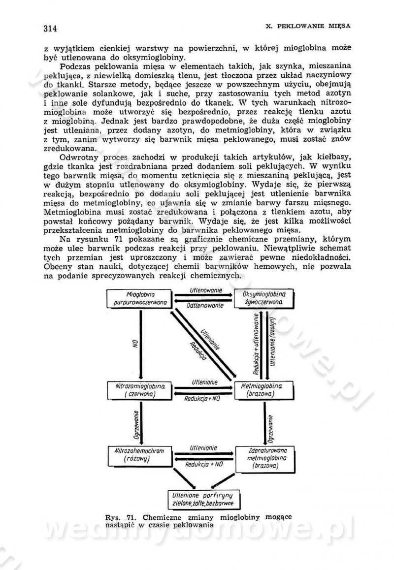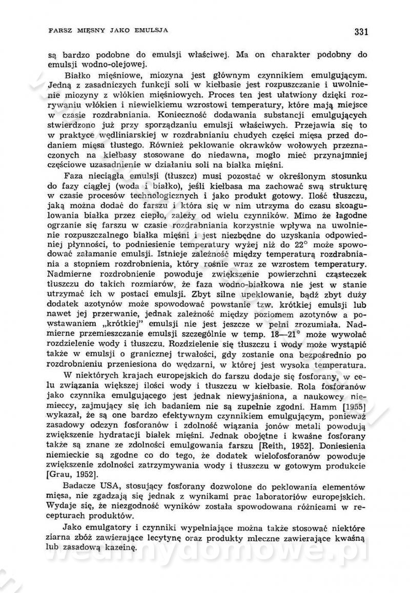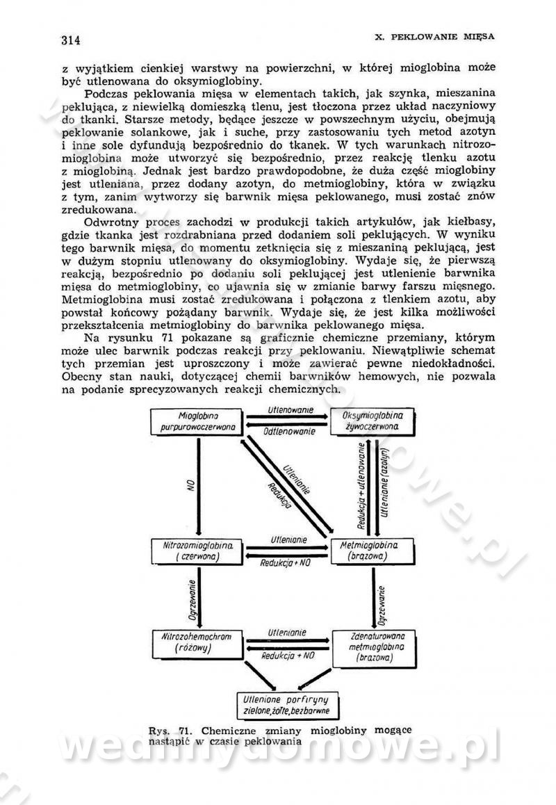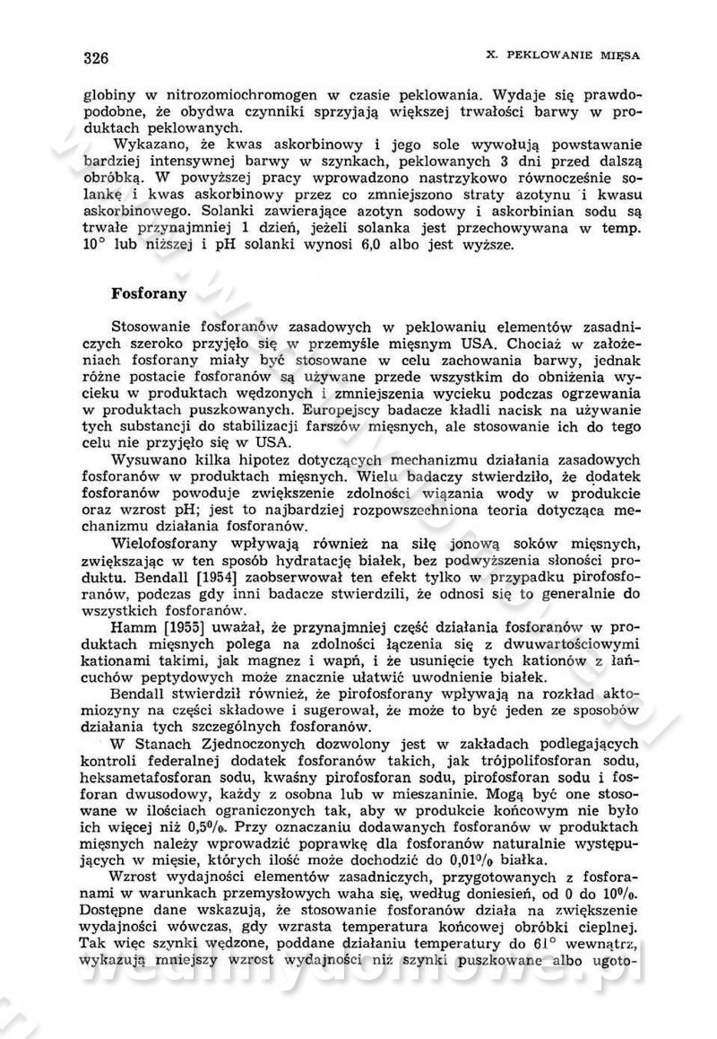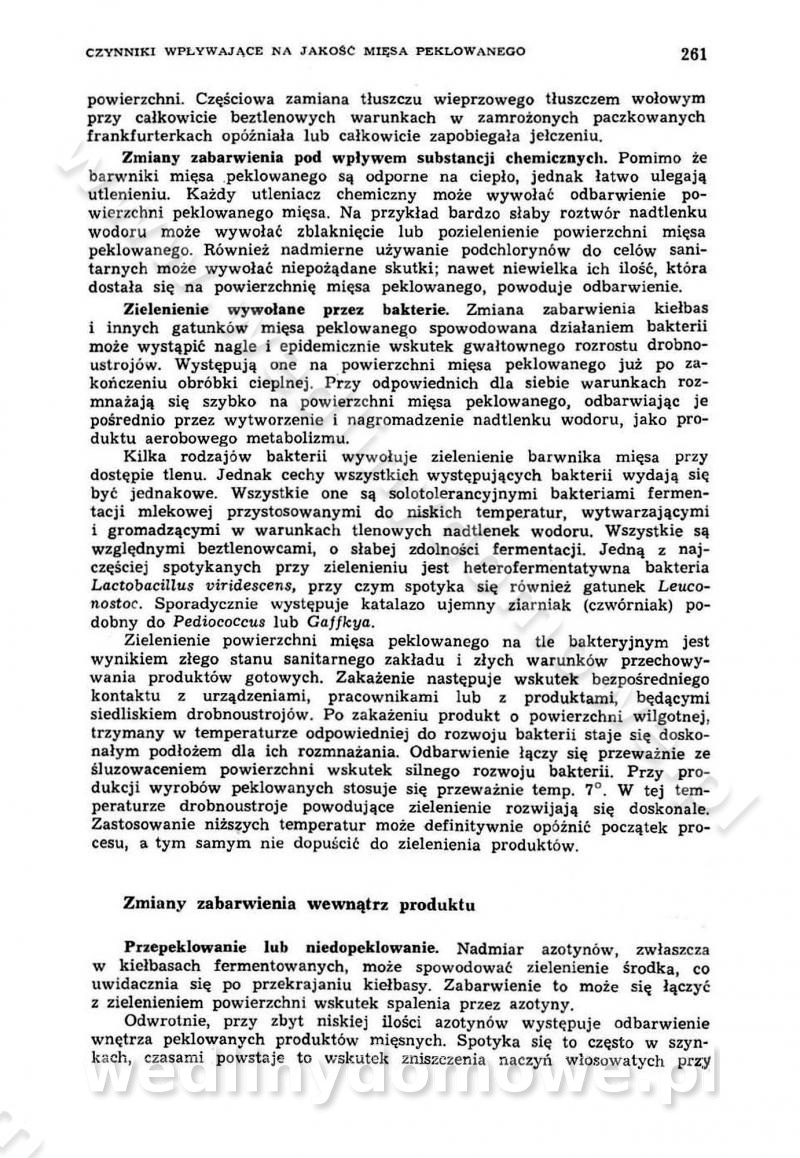 Urządzenia do wędzenia płynnymi preparatami dymu wędzarniczego Omówione wcześniej metody wytwarzania dymu wędzarniczego: tradycyjne, żarowe, cierne czy też parowe oraz sposoby doprowadzenia do komory czy rozprowadzenia dymu w komorze nie pozwalają na dokładną ocenę, jakie lotne produkty termicznego rozkładu materiału dymotwórczego i w jakich ilościach przedyfundują do produktu wędzonego. Możliwość taką daje zastosowanie preparatów dymu wędzarniczego o dokładnie określonym składzie chemicznym i stałym dla konkretnego preparatu. Preparat wędzący starannie dobiera się w zależności od tego, jakie cechy sensoryczne chcemy nadać wędzonej żywności. Podobnie jak dym wędzarniczy wytwarzany metodami tradycyjnymi, preparaty dymu wędzarniczego wykazują podobne właściwości barwiące, aromatyzujące, bakteriobójcze i antyoksydacyjne (Borys, 2005a). Sposób wytwarzania preparatów dymu wędzarniczego umożliwia uzyskanie preparatów niezawierających substancji smolistych, mutagennych i kancerogennych węglowodorów policyklicznych (Borys i Piotrowski, 1997; Pijanowski i in., 1996; Sikorski, 1980). Stwarza też możliwość nadawania im różnych aromatów dymnych o różnym stopniu kondensacji oraz wzbogacania o składniki mineralne, takie jak wapń, magnez, sód czy potas. Podstawowy skład chemiczny płynnego preparatu dymu wędzarniczego stanowią: woda 40-70%, kwas octowy 4-12%, kwas mrówkowy 0,5-3,5%, aldehyd glikolowy 1,7-5%, formaldehyd 0,5-12%, glioksal do 1,2%, acetol 2-5% i smoły do 12% (Borys, 2005, 2005a). Płynne preparaty dymu są w praktyce stosowane poprzez: rozpylanie w komorze wędzarniczej (tzw. atomizacja),natryskiwanie,zanurzanie,dodanie do mieszanki peklującej,bezpośrednie dodanie do farszu,odparowanie płynnego dymu na gorących powierzchniach komory wędzarniczej,powlekanie preparatem wędzarniczym wewnętrznych powierzchni sztucznych osłonek przetworów mięsnych.W przypadku rozpylania płynnego dymu ważne jest utrzymanie takich parametrów procesu, jak: odpowiednia koncentracja preparatu dymu,temperatura roztworu preparatu dymu,czas jego kontaktu z wędzonym produktem.Proces atomizacji polega na jednoczesnym podawaniu pod ciśnieniem 0,4 do 0,6 MPa do komory wędzarniczej mieszaniny płynnego dymu i powietrza. W komorze wędzarniczej tworzy się chmura aerozolu, którego cząstki fazy rozproszonej o średnicy 0,1-0,5 µm osiadają na powierzchni produktu i łatwiej dyfundują do jego wewnętrznych warstw. Proces atomizacji prowadzi się w szczelnych komorach wędzarniczych przy wyłączonej cyrkulacji powietrza. W trakcie pełnego cyklu wędzenia natrysk aerozolem następuje tuż po procesie podsuszania, czyli w momencie, gdy podczas tradycyjnego procesu wędzenia doprowadzany jest do komory świeży dym z generatora. Jest to etap procesu wędzenia w nowoczesnych komorach wędzarniczych i jako takim z łatwością steruje się automatycznie. O skuteczności procesu osiadania i dyfuzji preparatu decyduje wielkość cząstek fazy rozproszonej. Zaletami rozpylania płynnego dymu w urządzeniu wędzarniczym są: powtarzalność jakości wędzonego produktu,równomiernie rozłożony kolor oraz smak produktu po wędzeniu,zmniejszenie ubytku wagi produktu wędzonego o około 1-2%,obniżenie emisji dymu do środowiska,skrócenie czasu czyszczenia komór wędzarniczych, a w konsekwencji obniżenie kosztów procesu,wzrost wydajności urządzeń wędzarniczych,poprawa warunków higienicznych w wędzarni,mały koszt urządzeń do atomizacji i natrysku,zmniejszenie ryzyka powstania pożaru i wybuchu.Oprócz wymienionych już zalet zastosowania płynnego dymu przy rozpylaniu, procesy natryskiwania i zanurzania mają tę zaletę, że czas produkcji wędzonych wyrobów może zostać znacznie skrócony. Czas wędzenia skraca się o 1-2 min w stosunku do metod wędzenia dymem otrzymanym metodą termicznego rozkładu drewna. Metoda natryskowa polega na naniesieniu płynnego dymu, stosując dysze; w przypadku skraplania stosuje się sufitowy natrysk poprzez perforowane blachy. W małych zakładach proces natryskiwania prowadzi się ręcznie za pomocą pistoletu natryskowego. Po procesie natryskiwania nadmiar dymu odpływa z powrotem do zbiornika i jest ponownie wykorzystywany. Metoda immersyjna polega na zanurzaniu wędzonego produktu w roztworze wodnym preparatu dymu wędzarniczego. Kolejną metodą wytwarzania aerozolu jest odparowanie nakrapianego płynnego dymu na gorących powierzchniach komory wędzarniczej. Metodę tę cechuje równomierne rozprzestrzenianie dymu w komorze wędzarniczej. Współczesne metody nastrzykiwania surowców mięsnych solankami peklującymi umożliwiają dodanie preparatu dymu do roztworu wodnego mieszanki peklującej i wraz z nim wprowadzenie aromatu wędzarniczego do produktu. W celu uniknięcia reakcji ubocznych ze składnikami solanki peklującej stosuje się tylko takie produkty aromatów dymnych, które mają obojętne pH. Zastosowanie preparatów dymu w solance peklującej umożliwia równomierne aromatyzowanie wyrobów peklowanych na surowo. Przy produkcji wędlin preparaty dymu na bazie wody, oleju lub na nośnikach stałych (sól kuchenna) mogą być dodawane bezpośrednio do farszu. Jedną z nowszych metod jest stosowanie sztucznych osłonek do przetworów mięsnych z wewnętrzną warstwą powlekaną preparatem wędzarniczym. Z ekologicznego punktu widzenia metoda ta jest najbardziej przyjazna środowisku ze względu na brak zanieczyszczenia składnikami dymu powietrza oraz ścieków. Czas wędzenia decyduje o przejściu czynnika wędzarniczego z atmosfery wędzenia do wędzonego produktu i tym samym odgrywa ważną rolę przy przenikaniu dymu. Nowoczesne komory wędzarnicze można łatwo przestawić na proces wędzenia z zastosowaniem płynnego dymu. Warunkiem decydującym o skuteczności zastosowania płynnego dymu jest możliwość całkowitego zamknięcia urządzenia wędzarniczego. Tak samo jak w p