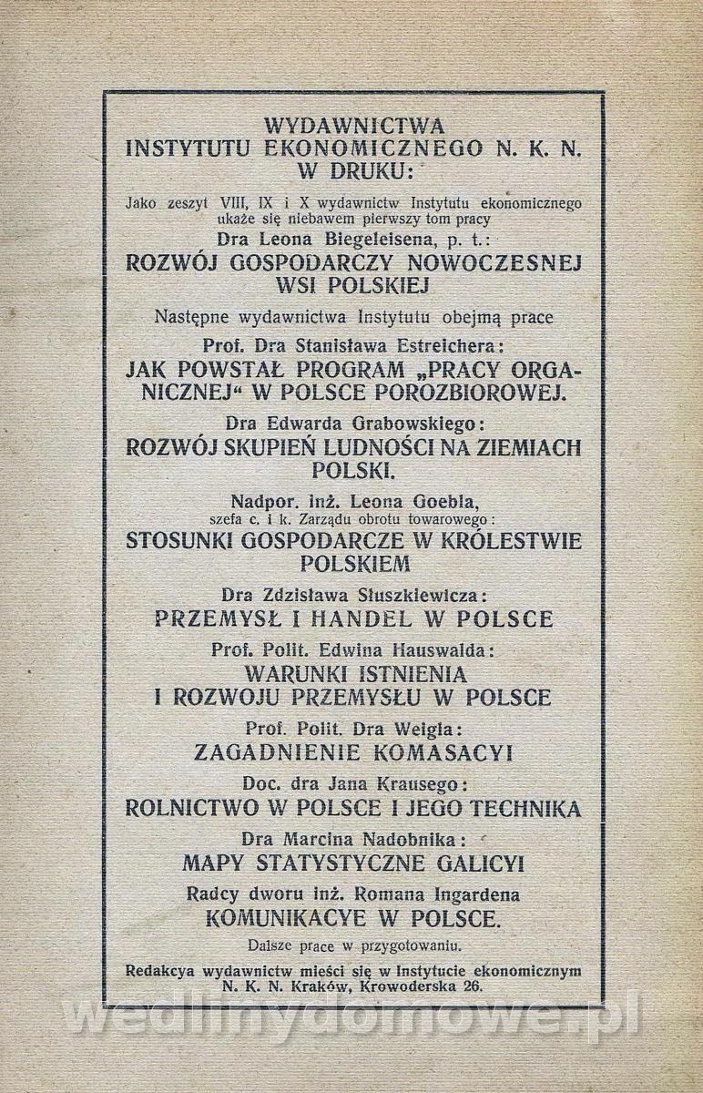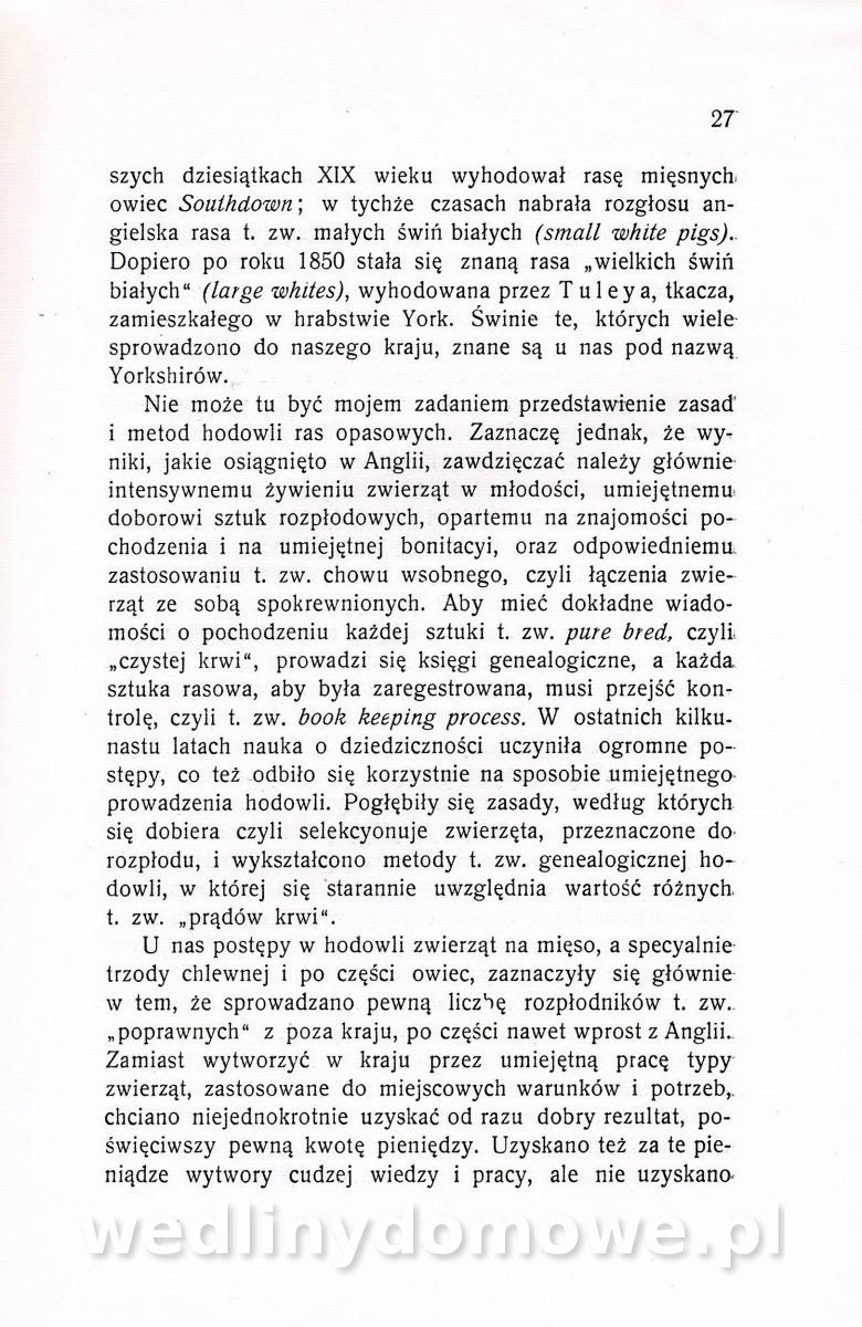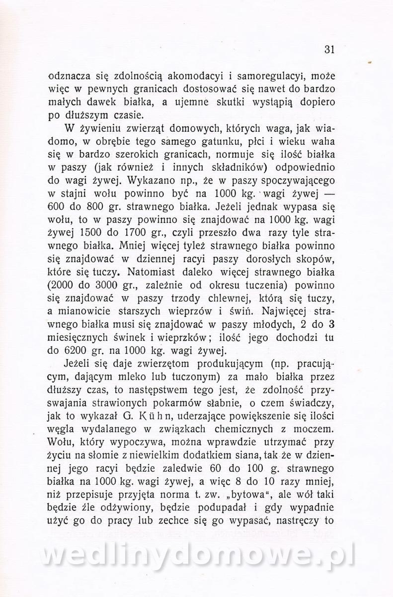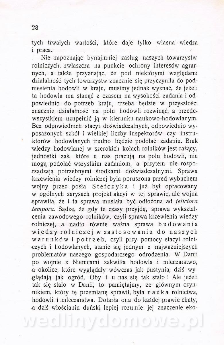 Królikarnie Zdjęcie: Bank Zdjęć WB Królikarnia powinna być umieszczona w miejscu suchym, jasnym, ale niezbyt nasłonecznionym, przewiewnym, osłoniętym przed północnymi i zachodnimi wiatrami, bez przeciągów oraz z dala od źródeł nieprzyjemnych zapachów (np. gnojowni i zbiorników na wodę z opadów). Tego rodzaju miejsce znajduje się zazwyczaj na podwórku lub w ogródku, obok szopy lub innego zabudowania w obejściu. Króliki nie znoszą gorąca — szkodzi im ono. Przed działaniem bezpośrednich promieni słonecznych trzeba chronić zwłaszcza króliki jednobarwne, chowane dla futerka, ponieważ na skutek działania słońca sierść blaknie i nabiera rdzawego odcienia. Najlepszym miejscem do usytuowania królikarni jest strona wschodnia lub południowo-wschodnia. Jeśli front królikarni musi być skierowany na południe lub zachód dobrze jest posadzić przed nią drzewa. Nie można jednak królikarni całkowicie pozbawić nasłonecznienia, ponieważ słońce jest ważnym i koniecznym środkiem dezynfekcyjnym i oddziałuje korzystnie na zdrowie zwierząt. Budując nowe stajnie, drewutnie lub szopy należy królikarnię umieścić przy zewnętrznej ścianie któregoś z tych budynków. Nie należy łączyć królikarni z oborą i chlewem. Ponieważ króliki trzymane są przez cały czas chowu tylko w królikarniach, rozmiary klatek powinny być dostatecznie duże, aby zwierzęta nie były w nich ściśnięte i mogły swobodnie się poruszać. Oczywiście wiele zależy od tego, jakiej wielkości króliki zamierza się chować. Dla ras o sztukach mniejszych wykonuje się klatki długości około 70 cm i wysokości 50 cm, dla sztuk średniej wielkości o długości 90 cm i wysokości 55 cm, a dla sztuk dużych o długości 150 cm i wysokości 60—65 cm. Jeśli nie trzeba oszczędzać ani miejsca, ani pieniędzy, można budować klatki dłuższe i wyższe. Dla królików jest to korzystne. Szerokość klatki przeważnie wynosi 80 cm. Ze zbyt szerokich klatek ciężko usuwać gnój i utrudnione jest chwytanie królików. Samice z małymi najlepiej trzymać w klatkach bliźniaczych. Jest to klatka o podwójnej długości lub dwie klatki pojedyncze, w których usunięto albo odchylono do sufitu drewnianą ścianę (przegródkę). Drzwiczki klatek robi się ażurowe, z ramy wypełnionej drucianą siatką o oczkach wielkości około 16 mm. Podczas silnych mrozów, zimnych wiatrów i słoty zakrywa się większą część albo całe drzwiczki, głównie na noc, workiem, starą kołdrą itp. Można też opatrzyć drzwiczki szkłem lub wypełnić drewnem pozostawiając jednak otwór umożliwiający wietrzenie klatki. Jeśli króliki mają w klatce sucho, dobrze znoszą zimę. Pozostałe ściany oprócz ściany frontowej muszą być szczelne. Szpary między deskami powinny być zasłonięte listwami, można też łączyć deski tworząc ściany na wpust i pióro. Klatki ustawia się zarówno obok siebie, jak i jedna na drugą. Tam gdzie jest mało miejsca, można ustawiać nawet trzy klatki jedna nad drugą (przeważnie tylko dla królików ras o sztukach średnich i małych). Ze względów higienicznych najbardziej odpowiednie są jednak klatki jednokondygnacjowe. W chowie na dużą skalę i dla ras szlachetnych należy stawiać tylko klatki jednokondygnacjowe. Dno klatki nie może spoczywać bezpośrednio na ziemi. Klatki stawia się na drewnianych nóżkach albo murowanych słupkach, których wysokość powinna wynosić w klatkach o trzech kondygnacjach (piętrach) co najmniej 15 cm, w klatkach o dwóch kondygnacjach 50 cm, a w jednokondygnacjowych 80 cm. Pod dno klatki na nóżki lub murowane słupki należy podłożyć papę. W klatkach wielokondygnacjowych podłoga najwyższej klatki powinna być umieszczona na wysokości około 160 cm nad ziemią. Najbardziej odpowiednim materiałem na królikarnie jest drewno, ponieważ jest ono dobrym izolatorem ciepła. Szkielet królikarni wykonuje się zwykle z łat 3x5 cm albo 4x6 cm, ściany, dach i podłogi z desek od 18 do 24 mm, najlepiej łączonych na wpust i pióro. Słupki z łat mogą być oszalowane, aby króliki nie mogły ich ogryzać. Ściany klatek ustawionych na nieosłoniętych miejscach, wystawionych w większym stopniu na działanie wiatru i mrozu, dobrze jest pokryć od strony północnej i zachodniej papą. Królikarnię można także wykonać z cegieł, pustaków lub płyt izolacyjnych, np. wiórowo-cementowych (przedtem z obu stron otynkowanych cienką warstwą zaprawy wapienno-cementowej), lub z drewna warstwowego. Przednią, frontową ścianę klatki zajmują drzwiczki. Wykonuje się je z drewnianej ramy o wymiarach 20x50 do 24x60 mm, na której jest rozpięta po zewnętrznej stronie (aby króliki jej nie ogryzały) siatka z ocynkowanego drutu grubości od 1,2 do 1,5 mm, o oczkach od 16 do 30 mm (taką siatkę można sporządzić samemu. W tym celu w boki ramy stanowiącej drzwiczki trzeba wbić krótkie gwoździki w odległości odpowiadającej wymiarom oczek siatki. Następnie umocować na nich druty najpierw w położeniu poziomym, a potem pionowym. Druty pionowe należy okręcić wokół poziomych (przepleść). Siatkę o oczkach mniejszych stosuje się, jeżeli zachodzi obawa pojawienia się szkodników (szczury). Konstrukcję ramy umacniają stalowe narożniki albo trójkątne kliny z drewna umieszczone wewnątrz ramy we wszystkich czterech rogach. Drzwiczki okuwa się szarnierowymi zawiasami oraz zaopatruje w haczyk, zasuwkę lub inne zamknięcie. Ramę drzwiczek można sporządzić także z prętów stalowych grubości 5—10 mm. Podłoga klatek musi być tak szczelna, aby mocz nie ściekał do dolnej klatki. Może ona być pojedyncza lub podwójna. Jeżeli daje się podłogi pojedyncze, należy pokryć drewniane dno klatki. papą smołową lub asfaltową albo blachą, zaginając brzegi pokrycia na ściany klatki, na około 10 cm, tak aby nie zaciekał pod nie mocz. Brzeg papy zagiętej na ścianie nal