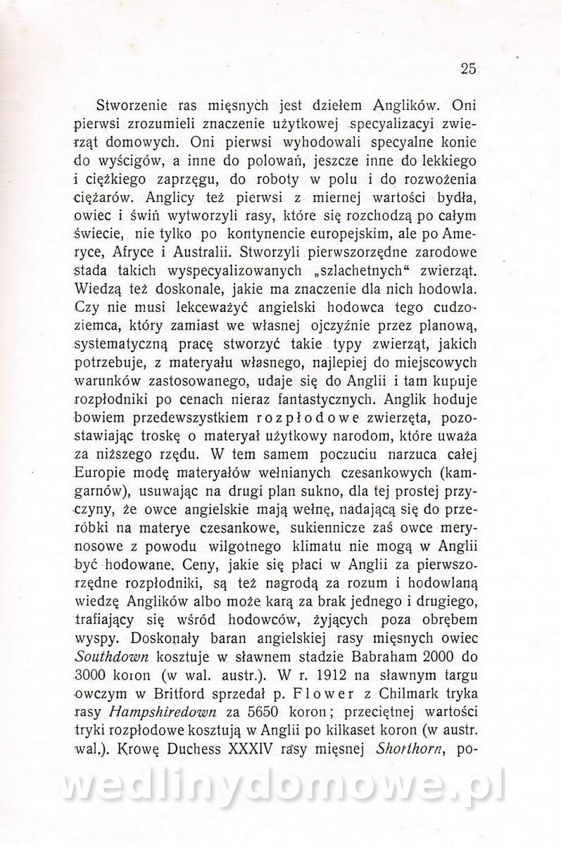 Obórki dla kóz Zdjęcie: Bank Zdjęć WB Chów kóz jest dość rozpowszechniony. Nie można jednak powiedzieć, aby dotychczas pomieszczeniom dla kóz poświęcano należytą uwagę. Kozę umieszcza się najczęściej tam, gdzie jest trochę miejsca. Jeśli ma swoją własną obórkę, jest to przeważnie pomieszczenie ciemne, w którym koza może tylko wegetować. Jest zrozumiałe, że nie można wówczas spodziewać się wielkich efektów z takiego chowu. Wielkość obórki należy uzależnić od liczby umieszczanych w niej kóz. Jeżeli zwierzęta trzymane będą na uwięzi, przewiduje się następujące wymiary stanowisk: dla kóz szerokość od 75 do 100 cm, długość od 130 do 150 cm, dla kozłów szerokość od 100 do 120 cm, długość od 150 do 180 cm. Koza trzymana wolno, nie uwiązana, wymaga od 2 do 3 m2, a kozioł 4 m2 powierzchni kojca. Trzeba również: pamiętać o odpowiednio dużym kojczyku dla koźląt, którego powierzchnia w obórce z jedną kozą powinna mieć wielkość od 1 do 1,5 m2. Kozy trzymane bez uwięzi rozwijają się o wiele lepiej niż trzymane na uwięzi. Szerokość korytarza w obórce wynosi od 75 do 100 cm, a wysokość pomieszczenia od 190 do 210 cm. Obórka dla kozy powinna być ciepła, sucha i przewiewna. Nie może jednak być w niej przeciągów. Kozę można także umieścić wspólnie z bydłem, nigdy jednak z końmi lub prosiętami, ponieważ koza nie znosi ich zapachu. Nie zaleca się także budowania nad obórką kurnika, ponieważ kozy nękane są wówczas przez pasożyty pochodzące od kur. Stanowiska dla zwierząt należy ogrodzić żerdziami lub deskami pozostawiając odstępy między nimi. Nie należy wykonywać szczelnych ogrodzeń z desek, ponieważ utrudniony jest wtedy dostęp powietrza i światła. Przez ażurowe ogrodzenie koza widzi swoich opiekunów i nie boi się, kiedy do niej podchodzą. Żerdzie lub deski ogrodzenia powinny być umieszczone pionowo, aby kozy nie mogły na nie wychodzić. Nie należy umieszczać kóz w pobliżu drzwi zewnętrznych, ponieważ kozy marzną w zimie podczas otwierania drzwi. Również ciemny kąt w budynku inwentarskim, pozbawiony dostępu powietrza, nie jest odpowiednim miejscem dla kozy. Samodzielne obórki dla kóz wykonywane są z drewna (rys. 1), cegieł pełnych, dziurawki, płyt pilśniowych przybitych na drewnianym szkielecie itp. Ściany drewniane wykonuje się najczęściej jako oszalowane. Szkielet wykonuje się z drewnianych krawędziaków albo okrąglaków, a opierzenie (szalowanie) z desek albo płyt drewna warstwowego (są to sklejki wielowarstwowe produkowane w postaci płyty, bloków lub belek, w Polsce w praktyce nazwane lignofolem. Jest to materiał o właściwościach znacznie przewyższających zwykłą sklejkę, gdyż przed sklejeniem odrzuca się wszystkie wadliwe części fornirów, drewno jest nasycone sztuczną żywicą i zwykłe silnie sprasowane. Dzięki temu jest również odporne na wilgoć i zapalenie). Do wewnątrz daje się izolacyjne płyty budowlane, np. miękkie płyty pilśniowe, paździerzowe, styropianowe. W okolicach górskich wykonuje się często ściany zrębowe (wieńcowe, rys. 1). Pod zewnętrznym oszalowaniem umieszcza się papę izolacyjną. Przestrzeń między szalunkami wypełnia się sypkim materiałem izolacyjnym z dodatkiem sproszkowanego wapna (w stosunku 10:1 do 15:1), np. czystym żużlem, trocinami, torfem, plewami jęczmiennymi, igliwiem sosnowym. Ściany z desek wewnątrz pomieszczenia można obić trzciną i otynkować albo tylko ostrugać, nasączyć środkiem impregnującym (pokostem, karbolineum) i pobielić. Zamiast desek wewnątrz pomieszczenia ściany można obić płytami wiórowo-cementowymi (płyty przymocowuje się ocynkowanymi gwoździami z wielkimi główkami lub daje się pod gwoździe podkładki z ocynkowanej blachy. Można użyć także do tego blaszanych zamknięć do butelek (kapsli). Wskazane jest przed przymocowaniem otynkować wewnętrzne ściany płyt cienką warstwą Zaprawy. Szpary między płytami zakleja się paskami juty albo pokrywa 10 cm pasem siatki z drutu ocynkowanego) (suprema) i pokryć je tynkiem wapienno-cementowym (rys. 2 i 3). Obórki murowane z cegieł mogą mieć ściany pojedyncze i podwójne — mur o grubości 30 (25) cm.(w Czechach produkuje się cegły o innych wymiarach niż w Polsce, dlatego w nawiasach podano liczby wynikające z użycia cegieł stosowanych w Polsce). Ściany pojedyncze trzeba na zimę okrywać (gacić) słomą, suchą nacią kartoflaną, perzem itp. Lepsze właściwości izolacyjne mają ściany podwójne. Są to jak gdyby dwie ścianki na pół cegły każda. Między nimi znajduje się szczelina o szerokości 4 cm. Co 5 lub 6 warstw ścianki są przewiązywane, tak że łączna grubość ściany podwójnej bez tynku wynosi 32 (28) cm (rys. 4). Podczas silnych mrozów dobrze jest i tę ścianę izolować od zewnątrz np. słomą, tak aby temperatura w obórce nie spadła poniżej +8°C. Ściany obórek dla kóz mogą być też murowane z pustaków żużlobetonowych i innych, o grubości 25 lub 30 cm (rys. 5). Obecnie tym ostatnim daje się pierwszeństwo. Ściany z cegieł, pustaków i płyt z wełny drzewnej zawsze należy otynkować. Fundament, który bywa zazwyczaj z kamienia (o szerokości 40 do 50 cm i głębokości 60 do 90 cm) lub z betonu 1:6 do 1:8 (około 120 kg cementu na 1 m3 kruszywa. W tej książce rodzaj betonu nie jest określony według norm, ponieważ dla hodowcy — budowniczego indywidualnego nie jest to dogodne) (szerokości od 20 do 40 cm) pokrywa się asfaltową warstwą izolacyjną, przeciw wilgoci. Strop w obórce najlepiej wykonać z żerdzi okrąglaków albo belkowy z pułapem. Jeśli na stropie nie będzie składać się paszy, można pozostawić go bez przykrycia, tylko na zimę należy go osłonić warstwą słomy, która tworzy izolację cieplną. Jeżeli przestrzeń nad obórką służy do składania paszy, konieczne jest ułożenie na d