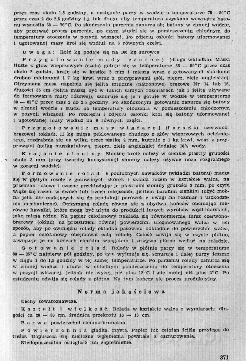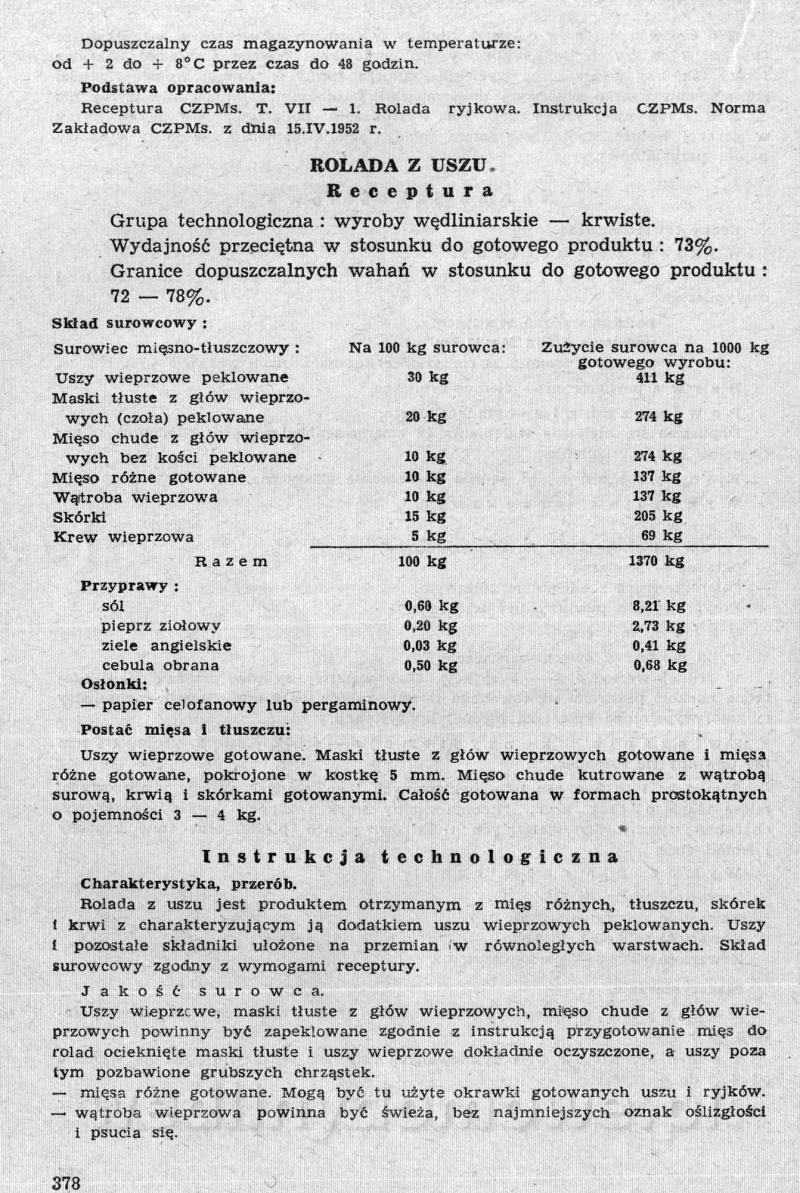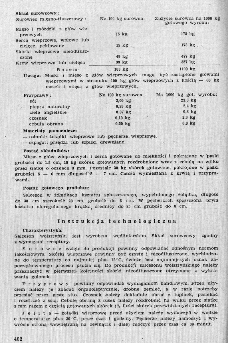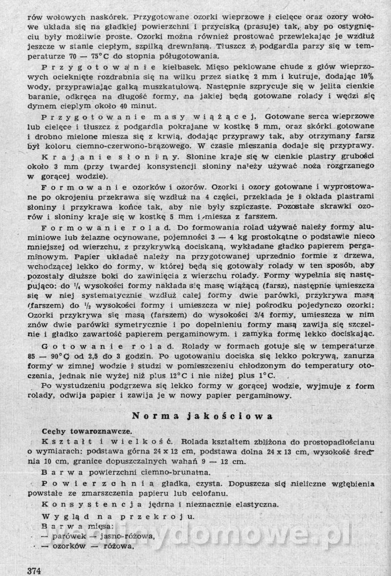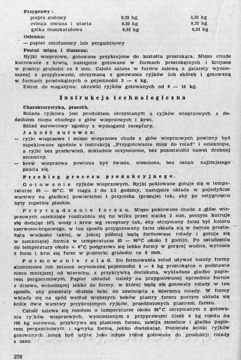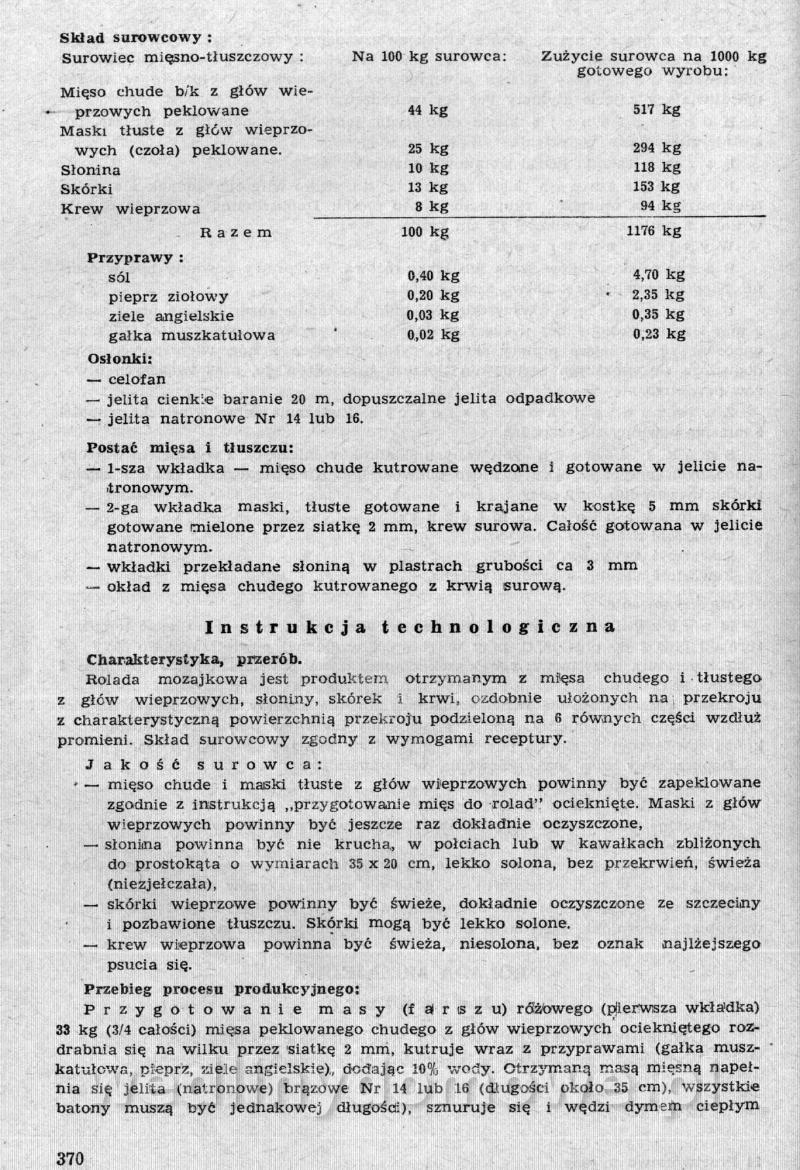 Nasz kącik ze zbiorami receptur pięknie się rozwija, ale ja nie o tym. Polecam szczególnej Państwa uwadze zbiór receptur występujących tutaj pod nazwą: [12][Rok 1958] Obrót i przetwórstwo mięsne. Zaraz wrzucę następną część o tyle ciekawą, że omawia produkcję różnego rodzaju rolad mięsnych. W ogóle, cały ten materiał jest wart zwrócenia uwagi. Naprawdę warto.
