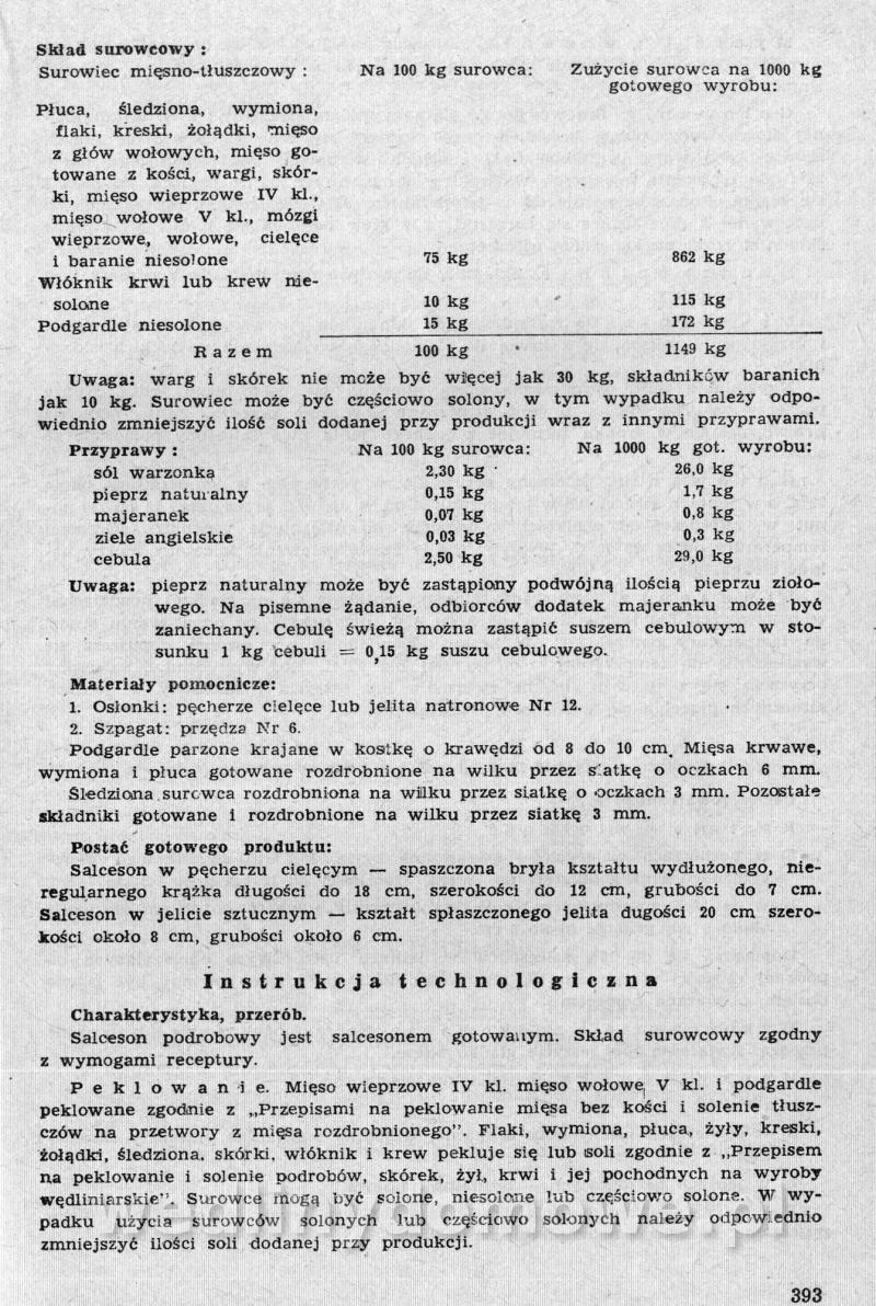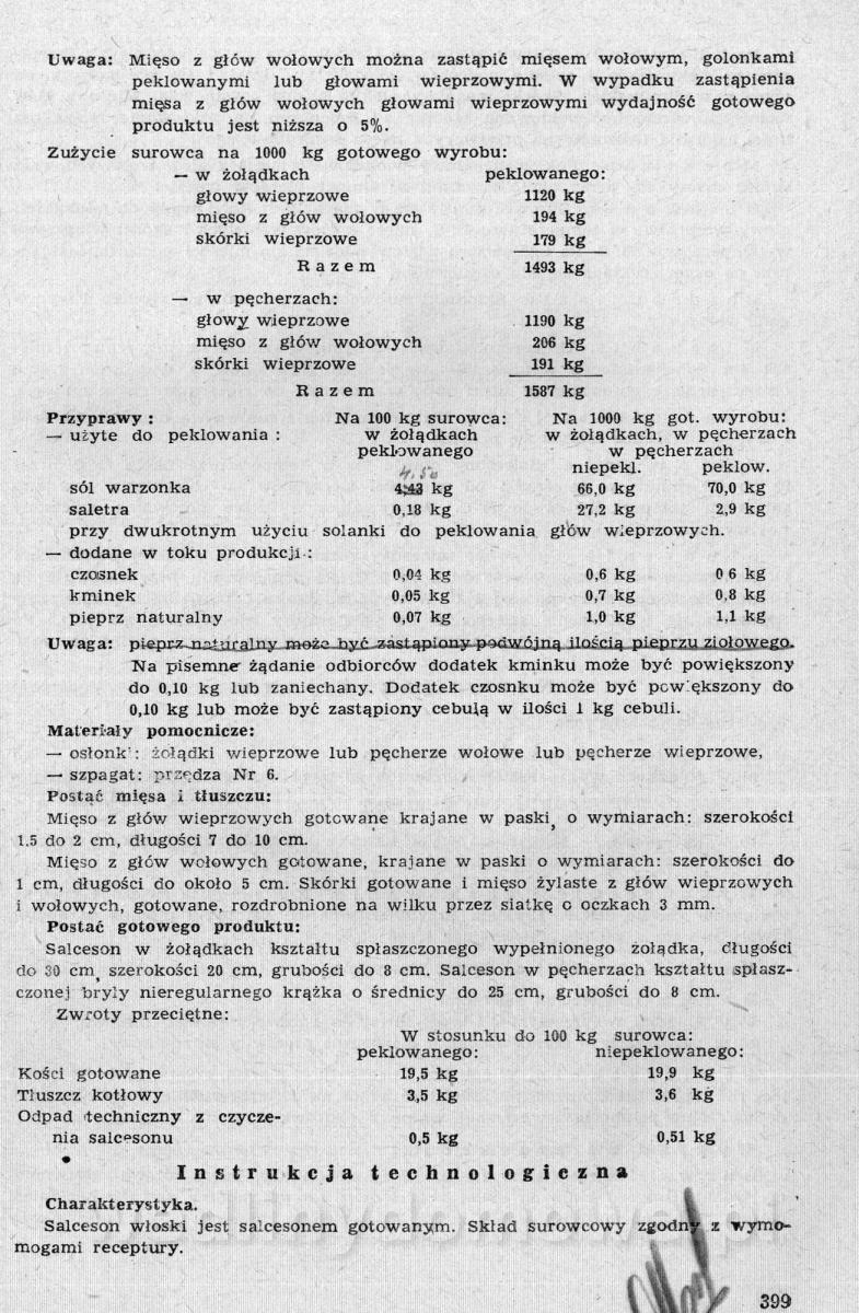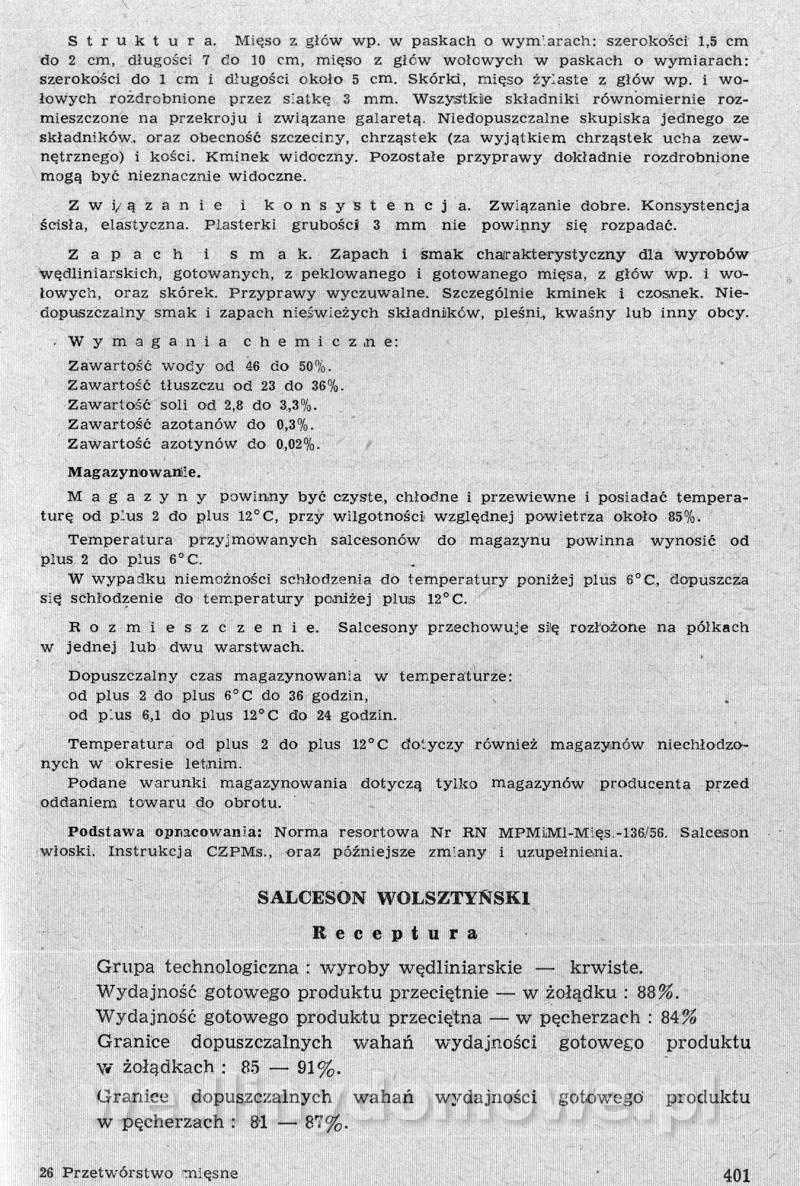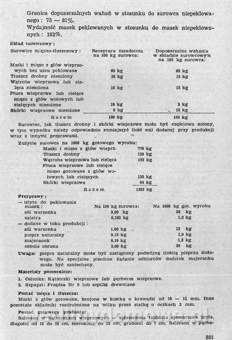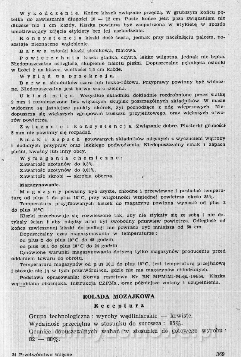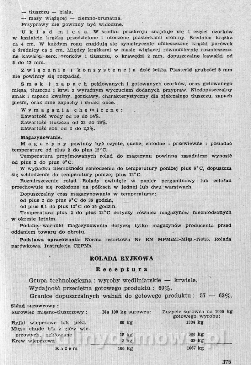 Nasz kącik ze zbiorami receptur pięknie się rozwija, ale ja nie o tym. Polecam szczególnej Państwa uwadze zbiór receptur występujących tutaj pod nazwą: [12][Rok 1958] Obrót i przetwórstwo mięsne. Zaraz wrzucę następną część o tyle ciekawą, że omawia produkcję różnego rodzaju rolad mięsnych. W ogóle, cały ten materiał jest wart zwrócenia uwagi. Naprawdę warto.