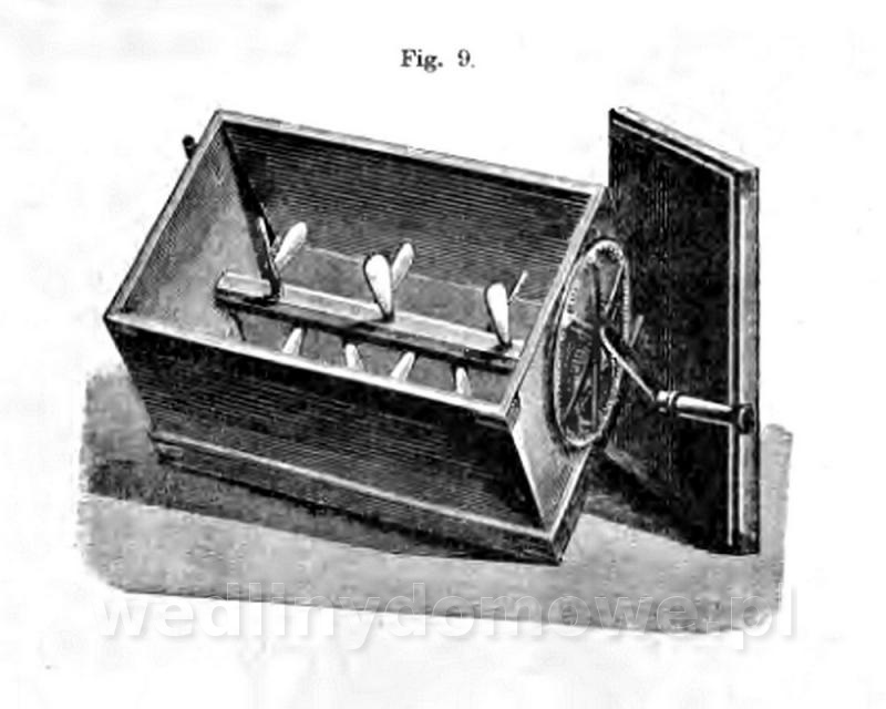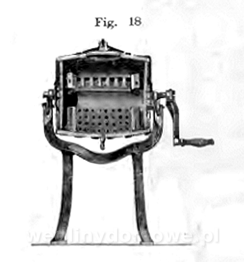 MASŁO Tworzenie się masła. W mleku i w śmietanie znajduje się mieszanina kilku tłuszczów (związków gliceryny z różnymi kwasami tłuszczowymi). Ta sama mieszanina tłuszczów wchodzi w skład masła. Mieszaninę tę nazywamy „tłuszczem mleka” lub „tłuszczem masła”. Procentowa zawartość tłuszczu jest oczywiście większa w maśle, niż w śmietanie albo w mleku, ale zarówno jakość składowych tłuszczów, jako też ilościowy skład mieszaniny tłuszczów jest taki sam w maśle, jak w śmietanie i w mleku. Wyrób masła nie polega zatem ani na jakiejkolwiek przemianie chemicznej, ani też na zmianie mechanicznego składu mieszaniny tłuszczów wchodzących w skład mleka. Tłuszcz znajduje się w mleku w postaci małych, zaledwie pod mikroskopem widzialnych kuleczek, zawieszonych w cieczy, którą nazywamy „surowicą mleka”. Mleko jest więc emulsyą tłuszczu, podobnie jak jest nią ciecz, otrzymana przez kłócenie oliwy z wodą, do której dodano gumy arabskiej. Tworzenie się masła polega na zlaniu i zespoleniu pojedynczych kuleczek tłuszczowych, zawieszonych (zemulgowanych) w mleku lub w śmietanie, w jednorodną stałą masę o ciastowatej konsystencyi. Zespolenie kuleczek tłuszczowych, zawieszonych w mleku nadkwaszonem, w śmietanie słodkiej (śmietance) lub w śmietanie kwaśnej (śmietanie), czyli utworzenie się masła, można osiągnąć, poddając materyał, który „zmaślamy" czyli „zbijamy", silnemu wstrząsaniu lub kłóceniu. Wstrząsanie to można uskuteczniać w najrozmaitszy sposób. Na małą skalę można zrobić masło nawet w butelce, poddając zawarty w niej materyał silnemu kłóceniu. W praktyce mleczarskiej używa się w tym celu odpowiednio zbudowanych przyrządów, zwanych kierżniami, masłobójkami lub maślnicami. Kierżnię wprowadza się w ruch ręcznie lub za pomocą siły zwierząt lub pary w ten sposób, że ruch ten udziela się zawartemu w kierżni materyałowi. W warunkach normalnych zbijanie masła trwa 20 do 40 minut; jednakowoż w ogóle czas potrzebny do wytworzenia w kierżni masła bywa dłuższym albo krótszym, zależnie od okoliczności, które są nam znane tylko częściowo. Niekiedy zdarza się, że jednego dnia masło zbija się po upływie kwadransa, gdy nazajutrz godzinę trzeba czekać na utworzenie się masła, mimo tego, że w trybie postępowania nic nie uległo zmianie; czasem masło po najdluższem zbijaniu nie tworzy się wcale. Ponieważ zbijanie masła, stanowiąc podstawę jego wyrobu, jest czynnością mleczarską wielkiej wagi, przeto koniecznem jest gruntowne poznanie wpływu tych czynników, od których zależy prawidłowe zbijanie się masła. W tym celu należałoby przedewszystkiem dokładnie poznać istotę samego procesu zmaślania. Jeżeli dotąd nie zupełnie jeszcze opanowano proces zbijania się masła, jeżeli dotąd w praktyce spostrzegamy dziwne nieprawidłowości, którym tylko do pewnego stopnia potrafimy zaradzić, to pochodzi to stąd, że nauka tylko do pewnego stopnia wyjaśniła istotę procesu tworzenia się masła i zależność jego od różnych czynników. Nieprawidłowości podobne do tych, które zdarzają się przy zbijaniu masła czyli przy wydzielaniu tłuszczu z emulsyi, obserwujemy również przy odwrotnej czynności: przy emulgowaniu ciekłego tłuszczu z inną cieczą nie mieszającą się z nim. Można powiedzieć, że niema nic pozornie kapryśniejszego, nad tworzenie się emulsyi. Kłócąc w tych samych warunkach dwie ciecze nie mieszające się z sobą (np wodę z oliwą), niekiedy otrzymujemy odrazu emulsyę, czasem utworzenie jej wymaga długotrwałego i energicznego kłócenia; zdarza się, że zrobienie emulsyi wcale się nie udaje. W czasie zbijania, masło nie tworzy się w sposób stopniowy, stateczny, lecz pojawia się po upływie pewnego czasu raptownie, nagle. Moment utworzenia się masła w kierżni poznajemy po tem, że odgłos wydawany przez materyał, wstrząsany w kierżni, nagle się zmienia. Odgłos ten, zrazu głuchy i jednostajny, na raz pozwala nam uchem wyraźnie rozróżnić, obok doskonale ciekłego płynu (maślanki), uderzenia miękkiego ciała stałego (masła). Jakkolwiek w czasie zbijania masła nie dostrzegamy gołem okiem żadnych zmian w materyale który zmawiamy, to jednak badanie mikroskopowe przeprowadzane w pewnych odstępach czasu wykazuje, że pewne zmiany w nim zachodzą. Zmiany owe polegają na tem, że kuleczki tłuszczowe tracą powoli właściwy im kształt kulisty i przyjmują kształty nieprawidłowe (kanciasty, podłużny, jajowaty i t. d.). Zrazu tylko większe kuleczki ulegają tej zmianie, z czasem jednak toż samo dzieje się z mniejszemi. Jednocześnie następuje zlewanie się zemulgowanych czyli rozpryśniętych w cieczy na pojedyncze drobne kropelki kuleczek tłuszczowych w większe agregaty. W miarę zbliżania się ku końcowi procesu zmaślania, agregaty te zwiększają się, a jednocześnie coraz mniejsze kuleczki zaczynają zlewać się z sobą. Skoro tylko agregaty kuleczek tłuszczowych dosięgną pewnych rozmiarów, stają się one widzialnymi okiem nieuzbrojonem i wnet tworzą się grudki lub bryłki masła. Jest to chwila, w której nastąpiło zmaślenie. Zadawalniającego wytłumaczenia naukowego opisanego powyżej procesu dotąd nie posiadamy. Dawniej sądzono, że kuleczki tłuszczowe są otoczone błonkami składającemi się z sernika i przypuszczano, że w skutek silnych wstrząśnień w czasie zbijania następuje rozerwanie tych błonek, umożliwiające łączenie się ze sobą kuleczek tłuszczowych i tworzenie bryłek masła. Wiadomo, że poniżej 100 masło wcale się nie tworzy. Potrzebę dosyć znacznego ciepła przy procesie zmaślania tłumaczono sobie wpływem temperatury na otoczki kuleczek tłuszczowych; wyobrażano sobie, że pod działaniem wyższej temperatury otoczki się rozciągają i że to ułatwia ich pękanie. Jednakowoż zbijanie masła ma także górną g