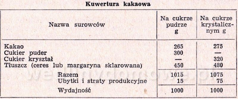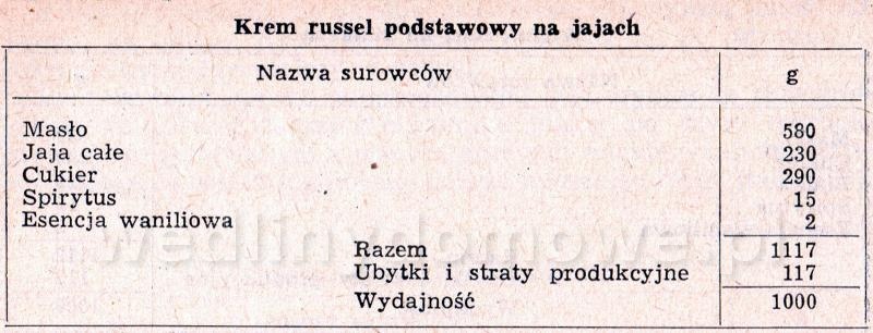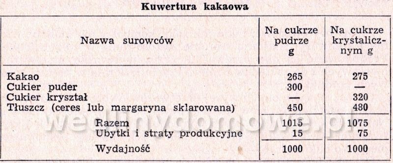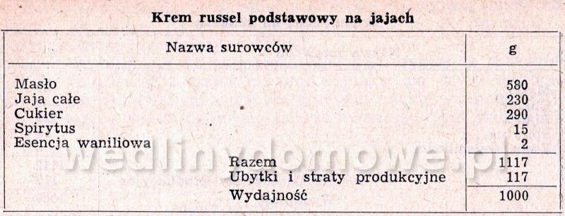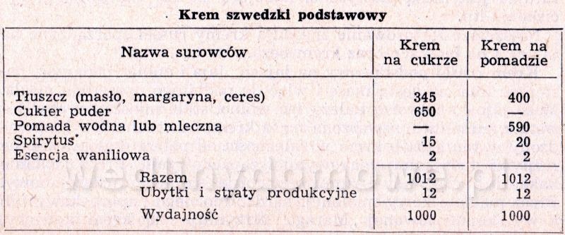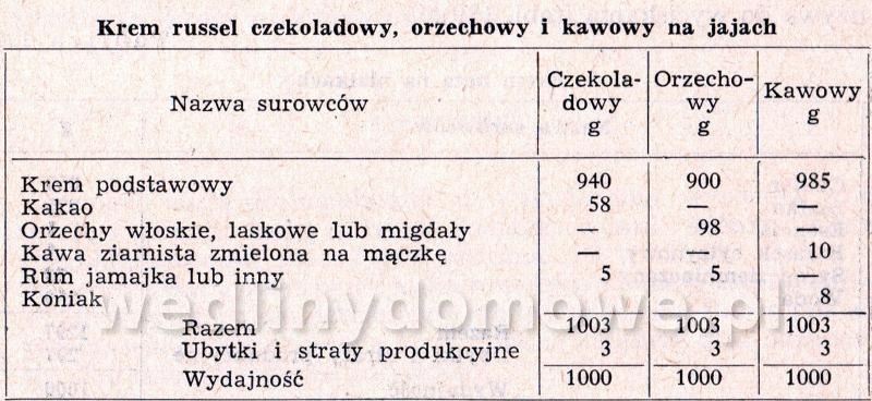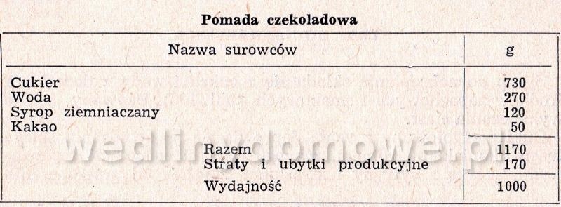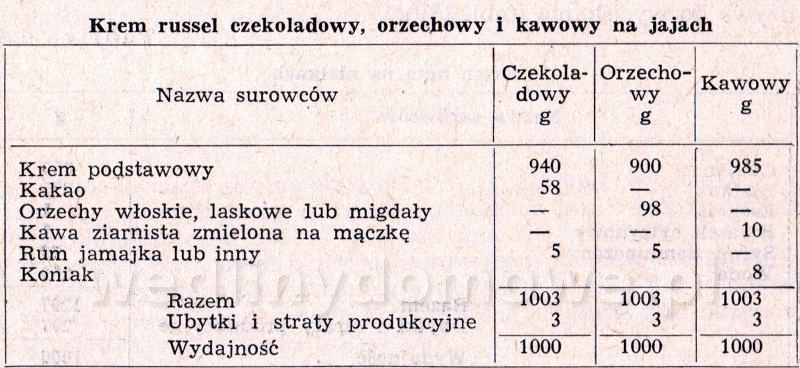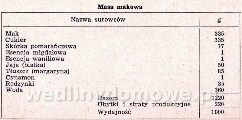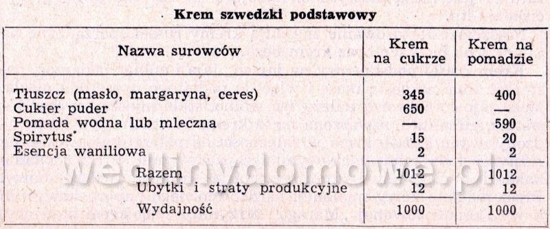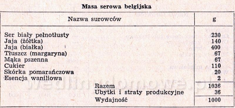 PÓŁPRODUKTY CUKIERNICZE Do półproduktów cukierniczych, oprócz ciast podstawowych omówionych w poprzednim rozdziale, zalicza się wszystkie produkty otrzymane z surowców cukierniczych nie stanowiące gotowych wyrobów, a używane do nadziewania, przekładania i wykańczania ciast i tortów. Do podstawowych półproduktów cukierniczych należą: masy, kremy, pomady, konserwy, glazury itp. MASY Masy używane w cukiernictwie do przekładania, napełniania i ozdabiania ciast i tortów wyrabiane są ze zmiażdżonych lub utartych surowców cukierniczych z cukrem i odpowiednimi smakami. Ich cechą charakterystyczną jest jednolita konsystencja. Do podstawowych surowców, z których sporządza się masy należą: mak, ser, orzechy, migdały i cukier. Masa makowa. Mak zagotowany, wypłukany w zimnej wodzie i oczyszczony z piasku (przez płukanie i zlewanie maku na gęste sito), dobrze odsączony z wody, następnie zmielony na walcach lub maszynce (w maszynce ręcznej należy mak przekręcić 3 razy) doprawia się dodając rozpuszczony tłuszcz, cukier, białka, migdały gorzkie lub esencję migdałową, wanilię w proszku (cukier waniliowy) lub esencję waniliową, cynamon, skórkę pomarańczową oraz rodzynki. Dla otrzymania dobrej masy nie należy dodawać jaj całych lub żółtek, gdyż wystarczają białka, które pozostają przy produkcji ciasta drożdżowego. Zamiast cukru można używać częściowo również syropu po owocach. Masa serowa. Do zgniecionego sera dodaje się cukier, jaja całe lub żółtka w zależności od jakości masy, jaką chcemy osiągnąć, skórkę pomarańczową, wanilię, gałkę lub kwiat muszkatołowy, tłuszcz (masło lub margarynę). Wszystkie te składniki należy dobrze wymieszać dodając na końcu mąkę pszenną. Masa serowa wiedeńska. Ser zgnieciony na walcach lub w maszynce należy rozrobić żółtkami, następnie dodać tłuszcz wolnej konsystencji, skórkę pomarańczową, esencję lub proszek waniliowy. Oddzielnie należy ubić białka z cukrem i wymieszać z utartą masą serową dodając odsianą mąkę. Masa orzechowa. Orzechy, cukier i białka należy zmiażdżyć na walcach, następnie dodać odsiane przez sito okruchy tortowe. Masy tej można używać do strucli oraz jako nadzienia do ciastek półfrancuskich, drożdżowych, rogali itp. Masa migdałowa na rogale. Migdały, cukier i białka oraz skórkę pomarańczową należy dobrze wymieszać i zmiażdżyć dwukrotnie na walcach, następnie wyrobić dodając mąkę i cukier. Dzielić ręcznie ręką umaczaną uprzednio w wodzie, obtaczać w siekanych migdałach formując rogale, układać na blachach smarowanych i wysypanych mąką i wypiekać w temperaturze 190—200°C. Masa migdałowa krakowska. Posiekane migdały, cukier, białka oraz skórkę pomarańczową podgrzewa się na ogniu do zagotowania, następnie wlewa na spód z kruchego ciasta, posmarowany marmoladą, a po zastygnięciu (6—12 godzin) kroi i układa na blachach w odstępach 3 cm. Wypiekać w temperaturze 180°C. Masa serowa belgijska. Skręcony na walcach ser należy rozrobić żółtkami i mlekiem, dodać skórkę pomarańczową i esencją waniliową, a następnie wymieszać lekko z białkami ubitymi z cukrem. W czasie łączenia masy serowej z białkami dodaje się przesianą mąkę, z którą należy całość dobrze i lekko wymieszać. Masa marcepanowa. Podstawowe masy marcepanowe sporządza się z migdałów lub orzechów oraz cukru i wody. Masy marcepanowe zastępcze wyrabia się z orzechów arachidowych, fasoli białej (duży Jasiek) z dodatkiem migdałów gorzkich lub esencji migdałowej. Jest również kilka sposobów sporządzania masy marcepanowej zastępczej bez dodatku migdałów, orzechów lub fasoli. Wytwarzanie takiego marcepanu polega na połączeniu kremu russel, syropu ziemniaczanego i esencji zapachowych lub ciasta parzonego jak na ptysie, bez rozrobienia jajami, z dodatkiem cukru pudru i esencji zapachowych. Masy marcepanowe mają zastosowanie przede wszystkim przy wyrobie drobnych marcepaników, owijaniu (obciąganiu) krajanek, ciastek korpusowych, dekorowaniu ciastek i tortów oraz rozrobione z kremem russel do przekładania tortów, herbatników, ciastek tortowych, korpusowych itp. Masy marcepanowe można sporządzać dwoma sposobami. Pierwszy sposób: do cukru ugotowanego do próby gałki (115 - 118°C) wsypuje się migdały, orzechy lub orzechy arachidowe uprzednio obrane z łuski. Podczas stygnięcia należy kilka razy masę przemieszać, a gdy całość ostygnie do temperatury 30° C i skrystalizuje się, przepuścić przez walce, pierwszy raz przez walce rozszerzone, drugi raz przez skręcone. Drugi sposób wyrobu masy marcepanowej na zimno polega na dwukrotnym przekręceniu na walcach mieszaniny migdałów, cukru i wody. Po skręceniu należy masę dobrze wyrobić i przykryć ściereczką, aby nie obsychała. Masa po skręceniu powinna być lekko sztywna, konsystencji zbliżonej do kruchego ciasta. Masę marcepanową z migdałów, orzechów arachidowych lub fasoli doprawia się spirytusem, rumem, esencją zapachową i barwnikami. Jako barwnika używa się kakao lub cukru palonego. Do marcepanu białego dodaje się esencję maraschino, do różowego — rum, do zielonego — esencję kwiatu pomarańczy, do czekoladowego — przeważnie kakao. Masy marcepanowe do przekładania tortów i ciastek sporządza się w ten sposób, że na 1 kg kremu russel dodaje się 0,40 kg masy marcepanowej i rozrabia stopniowo kremem, aby nie utworzyły się grudki, a następnie doprawia spirytusem i esencjami. Masa marcepanowa z kremu, syropu ziemniaczanego, cukru pudru i esencji zapachowych jest masą o konsystencji sztywnej, lekko ciągliwej, a jej barwa uzależniona od potrzeby. Krem, syrop ziemniaczany, esencję migdałową i rumową należy dobrze wymieszać, następnie wgnieść tyle odsianego cukru pudru, aby powstała masa o konsystencji sztywnej, lekko ciągliwej. Masę taką po oziębieniu do 