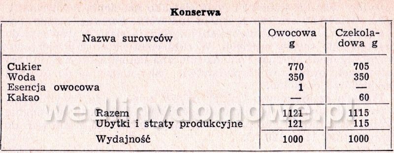 Półprodukty cukiernicze; masy, kremy pomady, konserwy i glazury