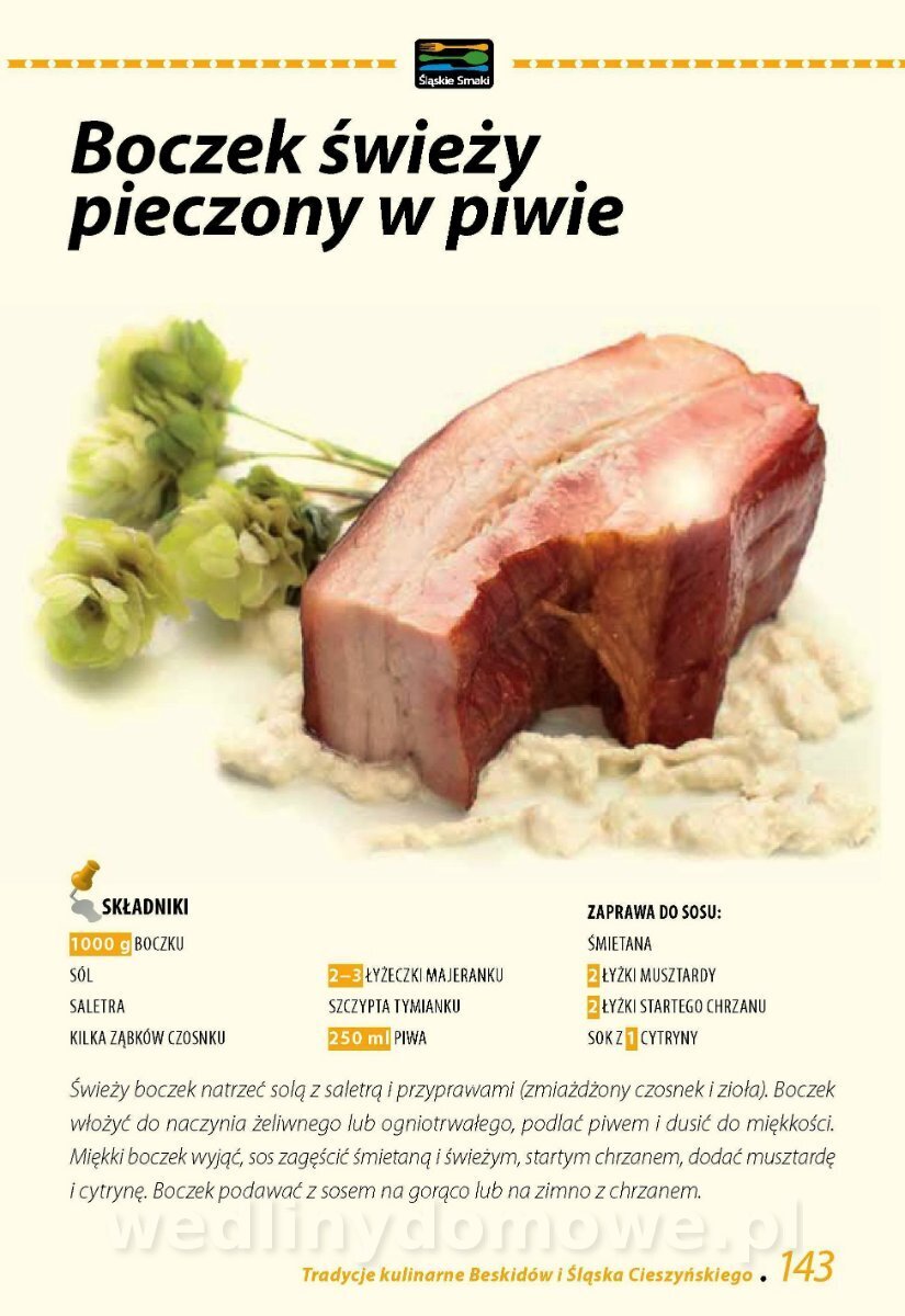 ZASTOSOWANIE ALTERNATYWNYCH DLA SOLI PEKLOWNICZEJ PREPARATÓW POCHODZENIA NATURALNEGO W TWORZENIU BARWY Autor zdjęcia: Radek Andrzejewski Barwa mięsa peklowanego, niepoddanego obróbce termicznej jest żywo czerwona w wyniku reakcji mioglobiny lub metmioglobiny z tlenkiem azotu i utworzenia nitrozylomioglobiny lub nitrozylometmioglobiny. Stabilność barwy mięsa peklowanego zależy w dużej mierze od warunków jego przechowywania. Obecność powietrza i światła powoduje rozpad barwników i zmiany barwy. Podczas peklowania obserwuje się cztery różne zakresy oddziaływań azotanu (III) sodu - najistotniejszego składnika mieszanki peklującej: tworzenie barwy (czerwień peklownicza), tworzenie aromatu (aromat peklowniczy), działanie utrwalające (działanie hamujące rozwój niektórych mikroorganizmów i produkcję toksyn), oddziaływanie przeciwutleniające (ochrona tłuszczu przed utlenianiem). Przy tworzeniu barwy peklowanego mięsa barwnik mięśniowy mioglobina reaguje z tlenkiem azotu - NO, który powstaje w środowisku kwaśnym z azotanów (III). Podobna reakcja dotyczy również hemoglobiny - barwnika krwi, który w wyrobach mięsnych typu szynki parzone występuje jednak w niewielkim stężeniu. Hemoglobina znajduje się zarówno w mięsie (tkance mięśniowej), jak i w osoczu krwi. Połączenie tlenek azotu-mioglobina (nitrozylomioglobina, nitrozomioglobina, rodniko-kation-nitrozylomioglobiny) lub tlenek azotu-hemoglobina, nadające mięsu charakterystyczną barwę tzw. czerwień peklowniczą jest stosunkowo trwałe na oddziaływanie światła i tlenu, przede wszystkim jednak na oddziaływanie ciepła. Podczas obróbki termicznej część białkowa barwników ulega denaturacji i powstaje nitrozylomiochromogen o barwie różowo- czerwonej, charakterystycznej dla wyrobów mięsnych wyprodukowanych z mięsa peklowanego i poddanych ogrzewaniu. Trwałość barwy tych wyrobów zależy od wielu czynników, związanych m.in. z: surowcem, recepturą, obecnością substancji dodatkowych, w tym wspomagających peklowanie, warunkami obróbki termicznej, rodzajem opakowań i warunkami przechowywania. Tworzenie formy nitrozylomiochromogenu jest najszybsze w temp. ok. 70°C. W stanie zamrożenia nitrozylobarwnik jest stosunkowo stabilny. W temperaturze powyżej punktu zamarzania następuje zmiana barwy i jest ona tym większa, im wyższa jest temperatura przechowywania. Szybkość procesu peklowania i tworzenia form nitrozylo- jest większa przy niższych wartościach pH, natomiast stabilność utworzonych barwników jest większa przy stosunkowo wyższych wartościach pH. Kontakt barwników mięsa peklowanego z substancjami utleniającymi, np. z H202, powstającymi w trakcie działania niektórych bakterii lub nadtlenkami, powstającymi w wyniku jełczenia tłuszczu, powoduje rozjaśnienie i utratę typowej barwy peklowanych przetworów mięsnych. Konieczność utrzymywania niskiej temperatury mięsa podczas całego procesu technologicznego (przed obróbką termiczną) ogranicza szybkość przebiegu procesu peklowania. Bardzo niska temperatura peklowanego mięsa (bliska krioskopowej) oraz niska temperatura solanki i panująca w peklowni (ok. 0°C) może powodować niezadowalający stopień przereagowania barwników hemowych, nierównomierność oraz niestabilność barwy peklowanego mięsa. Podwyższona temperatura (np. do 10-15°C) przyspiesza reakcje peklowania i uzyskanie poprawnej barwy, jednak zwiększa tempo namnażania się drobnoustrojów, co w efekcie może spowodować szybsze zepsucie gotowego produktu. Azotan (III) sodu to krystaliczny proszek o białym lub żółtawym odcieniu, o słonawym smaku, łatwo rozpuszczalny w wodzie, słabo w etanolu. Jest stosowany w postaci mieszaniny z solą kuchenną, w której zawartość NaN02 wynosi 0,5-0,6%. Typowa dawka wynosi 100-150 mg/kg wyrobu. Jako substancje konserwujące azotany (III) działają na niektóre bakterie, a nie hamują rozwoju pleśni i drożdży. Skuteczność działania rośnie z obniżeniem pH środowiska. Dla powstrzymania wzrostu Staphylococcus aureus w środowisku o pH 6,9 niezbędne stężenie azotanów (III) wynosi 4000 mg/kg; przy pH 5,8 spada do 400 mg/kg, a przy pH 5,05 do 80 mg/kg. Jednym z ważniejszych aspektów praktycznego stosowania azotanów (III) jest hamowanie rozwoju bakterii beztlenowych Clostridium botulinum. Ilość azotanu (III) niezbędna dla zapewnienia bezpieczeństwa produktu wynosi od 0,008% do 0,016%. Azotany (III) wykazują również działanie bakteriostatyczne na mikrokoki, gronkowce, pałeczki z rodzaju Enterobacter oraz laseczki Clostridium sporogenes i Clostridium perfringens. Natomiast pałeczki Salmonella są mało wrażliwe na działanie azotanu (III) sodu. Zastąpienie azotanu III w procesie peklowania wydaje się na dzień dzisiejszy niemożliwe. Azotany III nie występują w przyrodzie. Jest to substancja syntetyczna lub powstała z redukcji azotanów V, które występują naturalnie w wielu warzywach. Wykorzystanie naturalnie występujących w warzywach, przyprawach substancji tworzących proces powstawania barwy peklowniczej oraz substancji przyspieszających proces tworzenia barwy peklowniczej lub peklowania daje możliwość eliminacji składników oznaczonych symbolem E. Ważny jest również cel zastosowania np. majeranku czy soku z cytryny. W celu zwiększenia efektywności procesu peklowania przetworów mięsnych do mieszanki peklującej dodaje się kwas askorbinowy i jego sól sodową. Naturalnym źródłem witaminy C jest np. acerola. Są to związki o właściwościach silnie redukujących, ułatwiające uzyskanie charakterystycznej czerwonej barwy mięsa peklowanego i poprawiające jej trwałość. Proces produkcji kwasu izoaskorbinowego oparty jest na fermentacji aż do uzyskania kwasu 2-ketoglukonowego. Chemiczne reakcje doprowadzają bezpośrednio do uzyskania kwasu izoaskorbinowego. Natomiast uzyskanie kwasu askorbinowego jest bardziej skomplikowane i dłużs