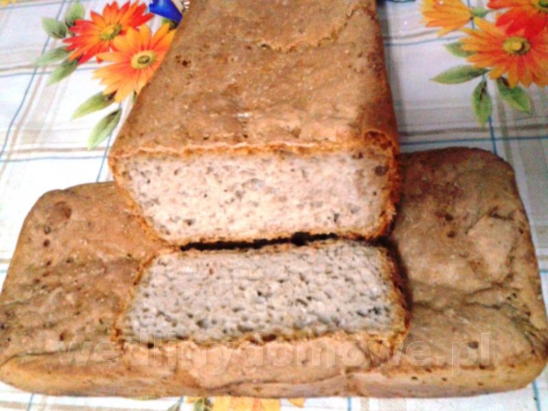 Mój chleb pszenno - żytni na zakwasie Zaczyn 250 g mąki żytniej typ 750 250 g zakwasu dokarmionego 12 h wcześniej 250 ml wody letniej przegotowanej Wykonanie Do naczynia wlać letnią wodę, rozpuścić zakwas żytni do całego rozpuszczenia dodać mąkę i dokładnie wymieszać odstawić na 12 h Po 10 był ok. Składniki na chleb własciwy 100 g mąki żytniej typ 750 150 g mąki pszennej typ 450 150 ml ciepłej przegotowanej wody Mała łyżeczka soli. ½ szkl otrębów pszennych 1/2 szkl wody I cały zaczyn. Wykonanie: Do miski wsypać obie mąki, sól i otręby dodać wodę i wszystko razem wymieszać. Następnie dodać zaczyn wyrobić wszystko na jednolitą masę. Podzielić na 2 części w 2 keksówki (wychodzi po 550g). Przykryć ręcznikiem i odstawić w ciepłe miejsce na 1 - 1,5 h. Następnie nagrzewamy piekarnik do 220 stopni. Wkładamy foremki i pieczemy w tej temperaturze przez 15 minut na najniższym poziomie, ale nie na dole piekarnika przy opcji góra-dół. Po 15 minutach zmniejszamy temperaturę do 200 stopni przekładamy na środek i wkładamy na sam dół miskę metalową z wlaną wodą ok ½ szkl. Po 30 min wyłączamy górną grzałkę. Dopiekamy chleb przez ok 30 - 40 minut Trzeba wypróbować piekarnik Dobry w smaku jutro będą piekł kolejny. A tu przepis na zakwas :/topic/9420-mój-zakwas-przepis-otrzymałem-od-wiekowej-pani-na-jednym-z-pokazów/
