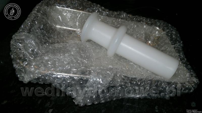 Wczoraj trochę przeciągu trzeba było zrobić w zamrażarce, więc padło na prasowankę z golonki wg Zbója Mistrza Madeja. Prasowanka z golonki wg Zbója Madeja.pdf Zrobiłem już kolejny raz. Zawsze wychodziło wspaniale, więc teraz parę modyfikacji własnych. Nie dolałem wody. Dodałem około 5oo g skórek wieprzowych potraktowanych wilkiem na oczkach 10, 4 i 2 mm. Na sam koniec górną warstwę skórek posypałem dość obficie słodką papryką. Znalazłem jeszcz dość duży płat skóry, którym wymościłem dno szynkowara. Z powodu dużej ilości skór szynkowar moczyłem 7 godzin w temp. 72°C. Wprowadzone zmiany uważam za udane. Nie pogorszyły jakości.