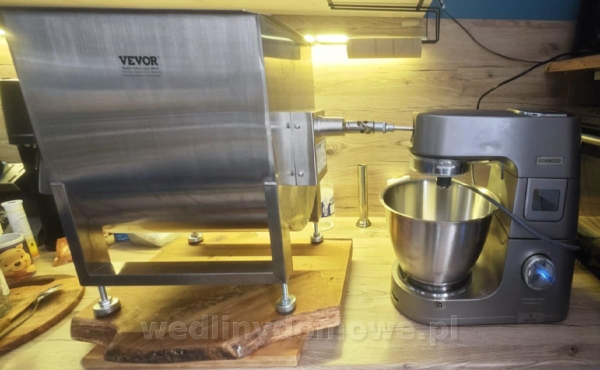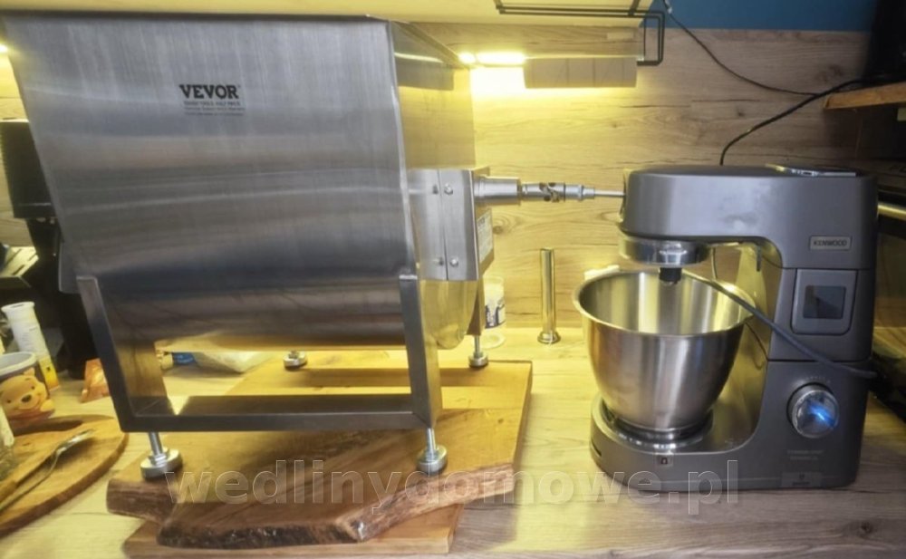Podłączone pod Kenwooda Chef i wreszcie ręce nie bolą, a kiełbasa jest odpowiednio wymieszana.