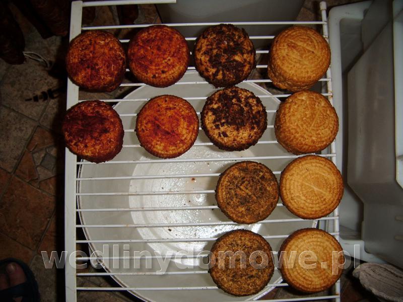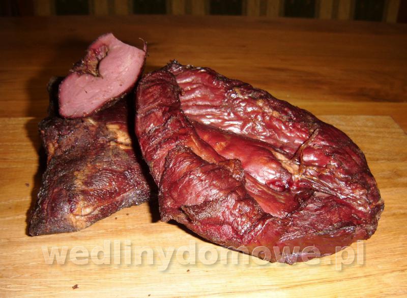 16. Serca peklowane w solance 5 % (peklosól) przez 48 h. Wyjęte z zalewy, opłukane, i do wędzenia. Wędzone razem z innymi mięsami, szynki, boczek, żeberka, w temp. około 55-70C. Nie były parzone. A w smaku. Jak dla mnie bardzo dobre. Kolega który próbował stwierdził, że przypominają mu wołowinę. Myślę, że ja też bym tak to określił.