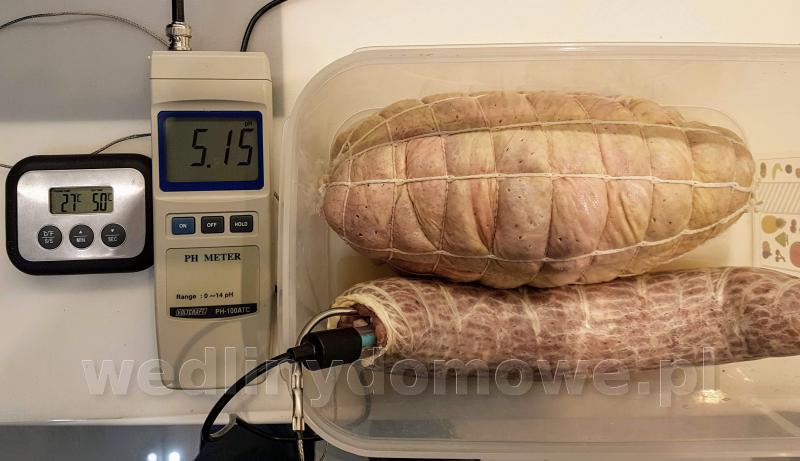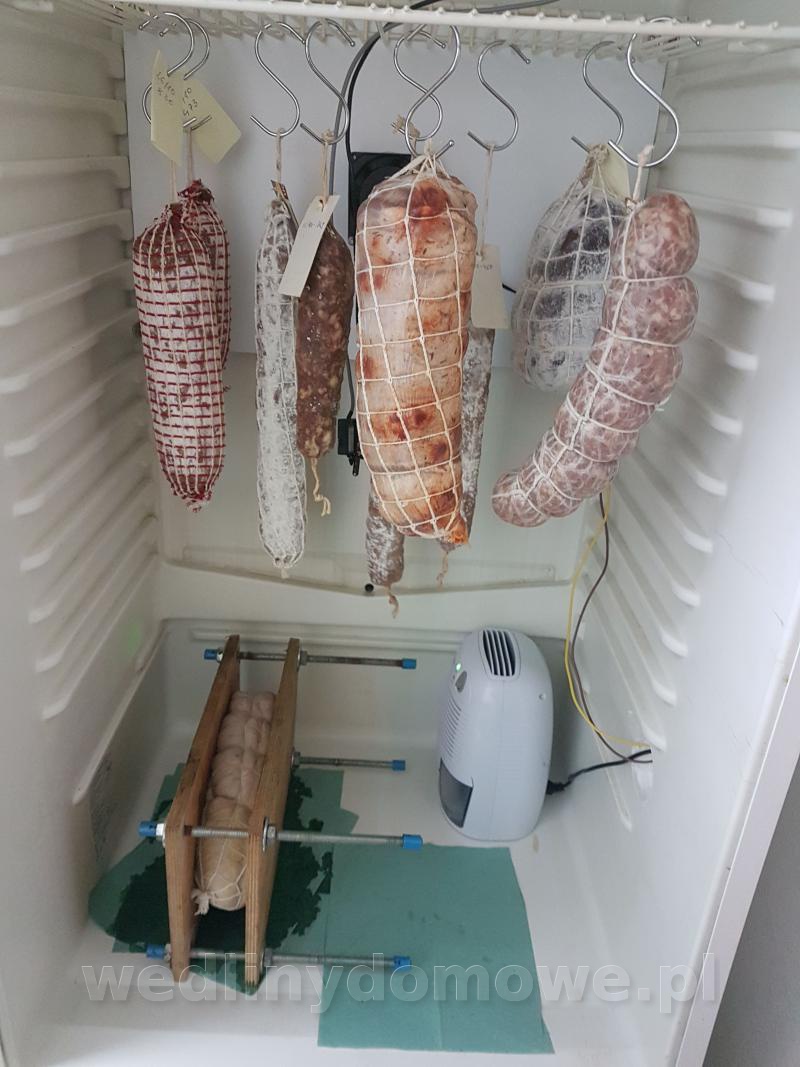 qzym Opublikowano 23 Listopada 2019 Autor Zgłoś Udostępnij #49 Opublikowano 23 Listopada 2019 Mnie tez to nie dawało spokoju i zacząłem szukać....... Gwoli wyjaśnienia: Salami bylo robione w tych osłonkach: Cieńsze salami robione kilka dni wczesniej (jeszcze nie mialem pH metru).Baton nie był prasowany. Ponieważ to było moje 1 salami- starałem sie podejśc do tematu zgodnie z prezentowanymi na forum techniologiami. Maszynka mimo,że 8 wcale nie ma takiej malej gardzieli, zresztą trudno kupować odzielną np. 32 do produkcji salami.Inne czyt. tradycyjne kiełbasy tez robie i jakoś nie miażdzy ...Noże i sitka zastosowałem nowe aby wyeliminować maksymalnie mozliwośc miażdzenia w czasie mielenia. Wiadomo, człowiek lekko podekscytowany przy pierwszych produkcjach tego typu wyrobów- ale robiłem zdjęcia i znalazlem...... Sprawa się chyba po części wyjaśniła. Ten baton z rozwarstwieniem to baton kontrolny, w środek była wbita sonda pH metru i termometr. Foto -po nabiciu, przed fermentacją: Po fermentacji farsz stężał, zrobił się sprężysty- i mimo że się starałem - to chyba za słabo obcisnąłem baton tak, że ten otwór po sondzie słabo się skleił .....no i w efekcie w czasie dojrzewania wyszło rozwarstwienie. Osłonka do du..... y i nie obciskała, siatka niewiele pomogła. O innych błędach- które zostaly wykazane w trakcie dyskusji - tez bede pamietał... Pozdrawiam , Janek PS> za 2-3 dni rozkroję ten 2 baton i wtedy zobaczymy. Dam znać. Cytuj Odnośnik do komentarza https://wedlinydomowe.pl/forum/topic/16555-z-domowej-dojrzewalni-i-nie-tylko/page/2/#findComment-646939 Udostępnij na innych stronach Więcej opcji udostępniania...