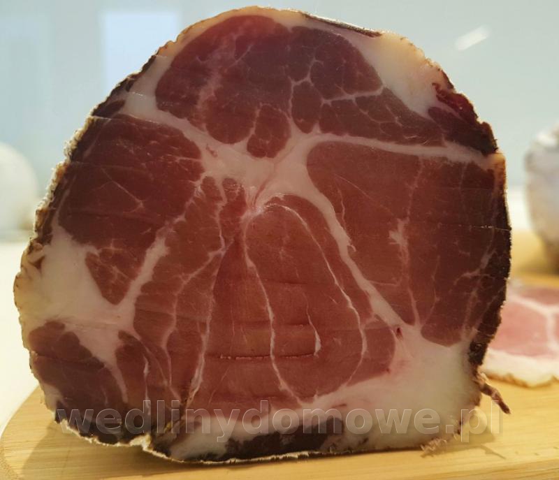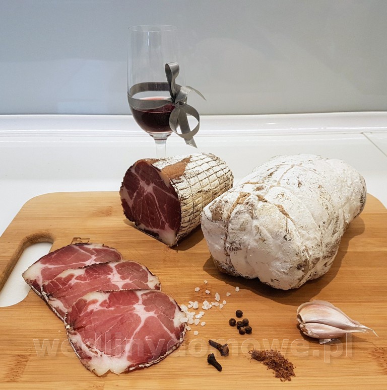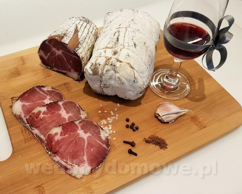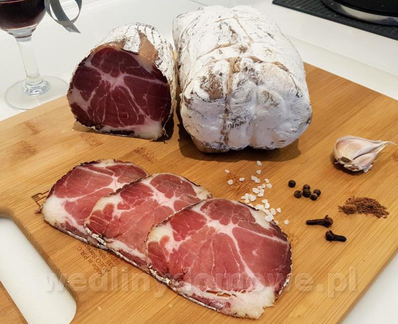 qzym Opublikowano 7 Listopada 2019 Autor Zgłoś Udostępnij #35 Opublikowano 7 Listopada 2019 Kolejny towar wydobyty z czeluści dojrzewalni. 2x Coppa w dwóch odsłonach. Mniejsza -lekko podwędzona na zimno( 9 godz) przed dojrzewaniem- utrata masy 41%. Większa (nie podwędzana) -utrata masy 39%, ta powędruje jeszcze do vacuum już bez pleśni. Ten kawałek (większy) brał udział w eksperymencie z wokami Avac- do dojrzewania wołowiny- przeleżał 9 dni w worku ale później trafił do komory dojrzewalniczej, którą w międzyczasie robiłem. #32 -w poniższym watku https://wedlinydomowe.pl/forum/topic/16417-wykorzystanie-work%C3%B3w-do-sezonowania-w-prod-w%C4%99dlin-dojrzewaj%C4%85cych/page-2 Przepis wg. Redzed robi.W smaku - finezja !!!! Cytuj Odnośnik do komentarza https://wedlinydomowe.pl/forum/topic/16555-z-domowej-dojrzewalni-i-nie-tylko/page/2/#findComment-645360 Udostępnij na innych stronach Więcej opcji udostępniania...