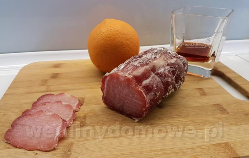 qzym Opublikowano 4 Listopada 2019 Autor Zgłoś Udostępnij #26 Opublikowano 4 Listopada 2019 Dziś na tapecie polędwica Lonzino wg. przepisu Redzed robi #92. Zrobiłem 2 kawałki - jeden w folii kolagenowej (to ten na fotkach), drugi w katnicy. Folia to zły pomysł !!-zbyt szybko traci wode , ten w folii stracił 38% a ten w kątnicy jeszcze wisi w komorze -ubytek ma 29%- , a więc duza różnica.Zresztą widać to po suchym pierścieniu- niewielki ale jest. Smak super, nuta pomarańczy baaaardzo słabo wyczuwalna- może za mało dałem do peklowania, może gatunek nie ten. Ogólnie jestem b. zadowolony. Była to tez próba komory (jeszcze tej poprzedniej, zrobionej z Amici)- jeden z pierwszych wyrobów. Cytuj Odnośnik do komentarza https://wedlinydomowe.pl/forum/topic/16555-z-domowej-dojrzewalni-i-nie-tylko/page/2/#findComment-645058 Udostępnij na innych stronach Więcej opcji udostępniania...