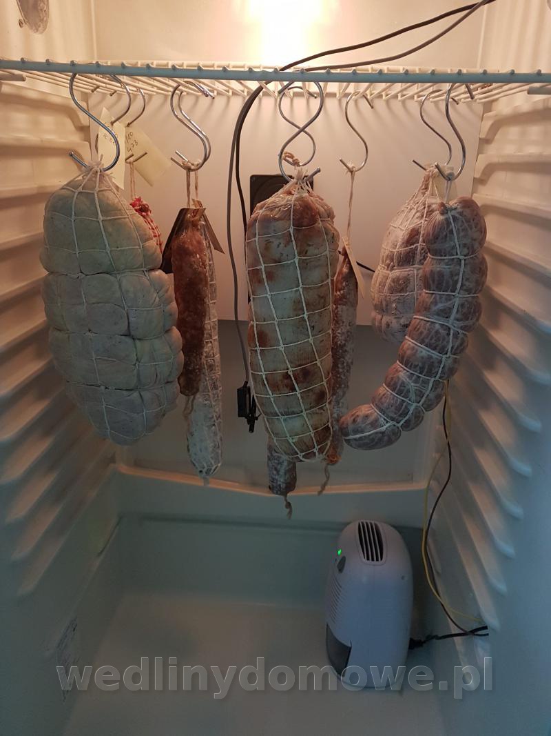 qzym Opublikowano 8 Listopada 2019 Autor Zgłoś Udostępnij #36 Opublikowano 8 Listopada 2019 Nowi "mieszkańcy" w komorze........ Jesus de Lyon przyprawiony Quatre Epices oraz z tego samego farszu Salami Tartufo z dodatkiem 1% trufli czarnej i Pancetta. Pierwszy raz w historii mam produkt, do którego dodatki przewyższyły wartość wsadu..... mam nadzieję ,że wyjdzie !!!!!! Fermentacja na kulturze SHI-59, zaszczepione FPN-63. Czekamy...... Cytuj Odnośnik do komentarza https://wedlinydomowe.pl/forum/topic/16555-z-domowej-dojrzewalni-i-nie-tylko/page/2/#findComment-645420 Udostępnij na innych stronach Więcej opcji udostępniania...