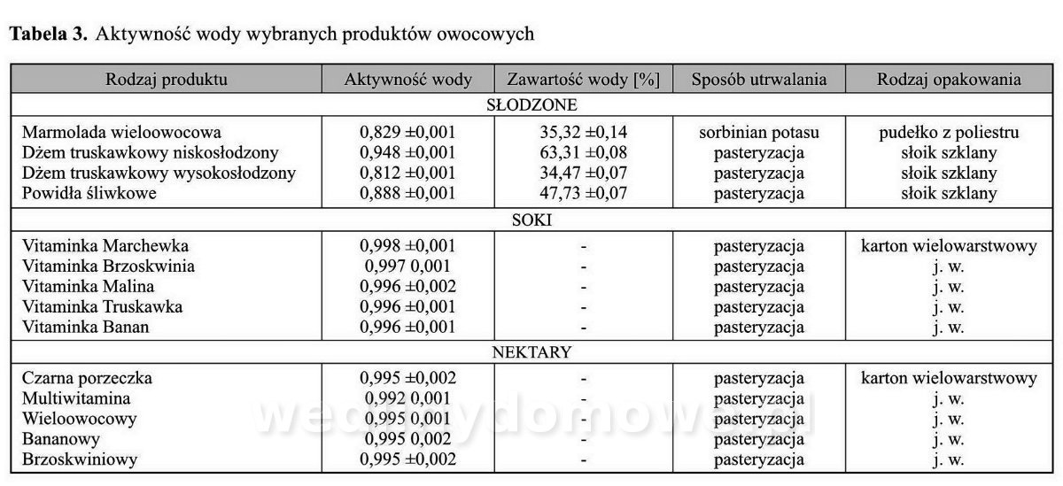 Maxell Opublikowano 3 godziny temu Zgłoś Udostępnij #1 Opublikowano 3 godziny temu Dr hab. inż. Zbigniew PAŁACHA, prof. SGGW Mgr inż. Magdalena MAKAREWICZ Katedra Inżynierii Żywności i Organizacji Produkcji, SGGW w Warszawie AKTYWNOŚĆ WODY WYBRANYCH GRUP PRODUKTÓW SPOŻYWCZYCH W artykule zamieszczono wyznaczone wartości aktywności wody wybranych grup produktów spożywczych, w ramach badań własnych, a także dokonano analizy tych wartości. Stwierdzono, iż aktywność wody większości badanych produktów spo¬żywczych wyniosła powyżej 0,9. Najwyższą aktywność wody posiadały produkty o dużej zawartości tłuszczu (0,999 - 0,940), niewiele mniejszą produkty mięsne (0,990 - 0,918), nabiałowe (0,998 - 0,813) i owocowe (0,998 - 0,812). Surowce i produkty piekarskie stanowiły grupę o najniższej aktywności wody, jednocześnie o szerokim zakresie aw (0,976 - 0,213). WSTĘP Stan wody w żywności zmienia się w sposób ciągły - od najbardziej uporządkowanego, przy bardzo małej zawartości wody, do występującego w czystej wodzie. Opis tego stanu jest wyrażony za pomocą aktywności - termodynamicz¬nego miernika potencjału chemicznego wody w żywności. Scott [19, 20], jako pierwszy wprowadził pojęcie aktywności wody i określił ją jako stosunek ciśnienia pary wodnej nad powierzchnią żywności (p) do ciśnienia pary wodnej nad powierzchnią czystej wody (p) w tej samej temperaturze i przy tym samym ciśnieniu całkowitym: Przedstawiona powyżej definicja aktywności wody za¬kłada, że żywność jest w stanie równowagi wilgotnościowej z otaczającą atmosferą. W przypadku, gdy przestrzeń wokół próbki żywności jest niewielka i ustalą się warunki równo¬wagi, można napisać równanie: w którym cp jest wilgotnością względną atmosfery w otoczeniu badanego materiału, wyrażoną w procentach. Aktywność wody przyjmuje wartości od 1 - dla czystej wody, do 0 dla środowiska, w którym nie ma wody lub czą¬steczki wody nie mają zdolności wykonania pracy (np. woda strukturalna). Ogólnie, aktywność wody żywności wilgotnej jest na poziomie 1,00 - 0,90, żywności o średniej zawartości wody od 0,90 do 0,55, a żywności o niskiej zawartości wody w przedziale 0,55 - 0,00 [12, 13]. Wprowadzenie pojęcia aktywności wody umożliwiło po¬wiązanie stanu termodynamicznego wody w żywności z jej właściwościami, jakością i trwałością. W latach siedemdziesiątych ubiegłego wieku Labuza i jego zespół [7] opracowali tzw. mapę stabilności żywności, która uzależniała przebieg i kinetykę określonych procesów i reakcji od aktywności wody. Przedstawia ona zależność między aktywnością wody a czynnikami decydującymi o trwałości żywności - rozwojem drobnoustrojów, aktywnością enzymów, przebiegiem reakcji nieenzymatycznego brunatnienia oraz szybkością utleniania tłuszczów i barwników. Rahman [15] poszerzył mapę stabilności, wprowadzając do niej przebieg zmian właściwości mechanicznych żywności. Minimalna wartość aktywności wody niezbędna do rozwoju poszczególnych grup drobnoustrojów wynosi: aw = 0,9 dla większości bakterii, aw = 0,8 dla większości drożdży i aw = 0,7 dla większości pleśni. Powszechnie przyjmuje się, że drobnoustroje nie mogą się rozwijać w żywności o a <0,6 [13]. Reakcje enzymatyczne zwykle wymagają obecności wody [3, 11]. W tych reakcjach, gdzie woda jest substratem, enzymy są bardziej czułe na zmiany aktywności wody niż te, w których woda jest tylko rozpuszczalnikiem. Praktycznie przy aw < 0,3 reakcje hydrolizy enzymatycznej nie występują. Działanie takich grup enzymów jak amylazy, fenolooksydazy, peroksydazy jest hamowana, gdy aw < 0,8. Natomiast reakcje, w których substrat jest hydrofobowy i rozpuszcza się w tłuszczu mogą przebiegać przy aktywności wody znacznie niższej (np. lipazy przy aw « 0,1). Ważny wpływ na jakość i trwałość żywności mają reak¬cje chemiczne. Utlenianie tłuszczów przebiega w środowisku suchym i o bardzo małej aktywności wody (minimalna szybkość utleniania tłuszczów przy aw od 0,1 do 0,3). Reakcje nieenzymatycznego brunatnienia osiągają maksimum dla wartości aktywności wody w przedziale 0,3 - 0,7 w zależności od rodzaju produktu [8]. Witamina C, barwniki hemowe, chlorofile i antocyjany utleniają się tym szybciej, im aktyw¬ność wody jest większa [22]. Przemiany fizyczne, które często towarzyszą zmianom tekstury żywności, dotyczą głównie przejścia szklistego, krystalizacji lub rozpuszczania niektórych składników. Pro¬dukty, w których przeważa stan amorficzny są higroskopijne, a przejście fazowe ze stanu szkła do stanu krystalicznego odbywa się wąskim zakresie aktywności wody (0,3 - 0,5). Proces krystalizacji składników powoduje zmiany jakości produktów, polegające na utracie ich kruchości [5, 6, 9] oraz zbrylaniu i zlepianiu [2, 18]. Największą stabilność produkty spożywcze osiągają przy aktywności wody na poziomie zawartości wody w monowarstwie (aw = 0,07 - 0,35 przy zawartości wody od 2 do 15%) [16]. Celem artykułu jest prezentacja i analiza wyznaczonej aktywności wody dla wybranych surowców i produktów spożywczych pochodzenia roślinnego i zwierzęcego. METODYKA BADAŃ 1. Materiał badawczy Materiał do badań stanowiły produkty spożywcze po¬chodzenia roślinnego i zwierzęcego dostępne na rynku. Pochodziły one od różnych producentów i były zapakowane w opakowania jednostkowe zawierające charakterystykę produktów (nazwę produktu, zakład produkcyjny, skład surowcowy lub skład chemiczny produktu, datę produkcji, datę przydatności do spożycia, warunki przechowywania, rodzaj konserwantów lub ich brak, sposób utrwalenia produktu). Produkty pochodzenia roślinnego Produkty piekarskie: chleb (miękisz) - razowy, żytnio- pszenny z soją, pumpernikiel, tostowy, pieczywo chrupkie pszenne i żytnie, mąka - pszenna, żytnia razow