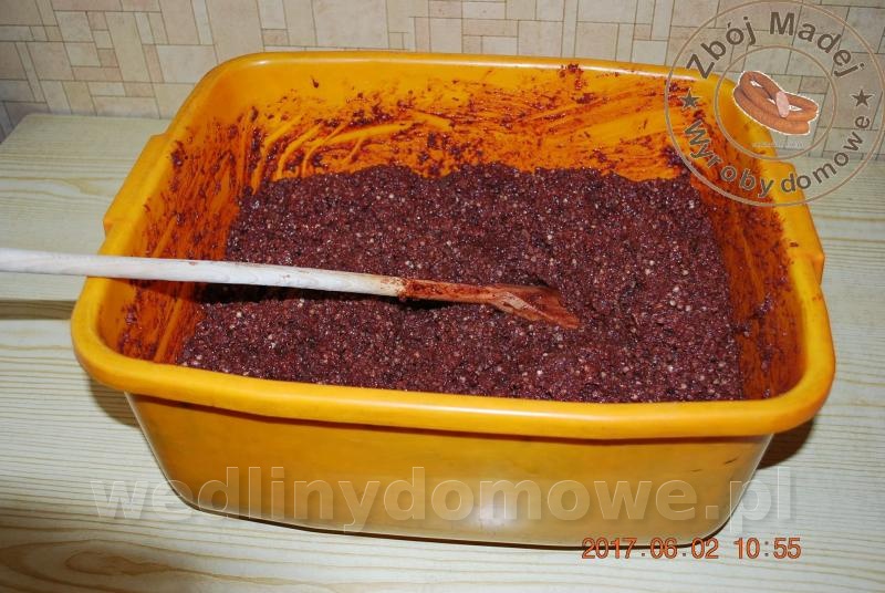 Zbój Madej Opublikowano 1 Sierpnia 2017 Autor Zgłoś Udostępnij #341 Opublikowano 1 Sierpnia 2017 Machnąłem trochę polskiego kawioru. Niestety, niespodzianka z pewnych względów musiała zostać zmielona na sitku 14mm, tylko kawałek pokroiłem, reszta przez maszynkę, ale i tak jest smaczniasta Cytuj Witajcie BiSwW Nic mnie tak nie cieszy jak masarskie rzemiosło etiam latrones suis legibus parent !! Wędzę więc jestem Odnośnik do komentarza https://wedlinydomowe.pl/forum/topic/5781-wyroby-podrobowe-wg-zb%C3%B3ja/page/14/#findComment-561554 Udostępnij na innych stronach Więcej opcji udostępniania...