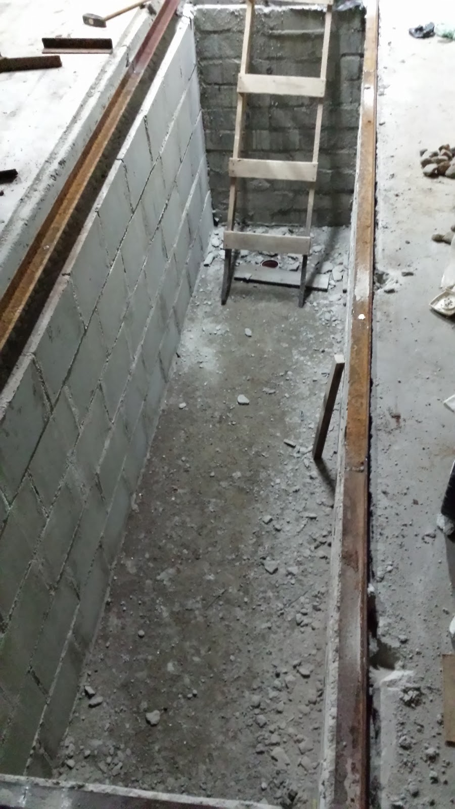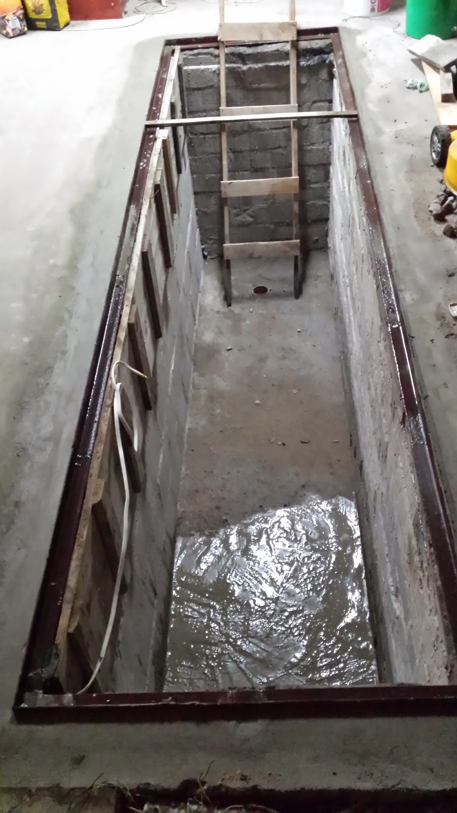 Od jakiegoś czasu dokańczam kanał w garażu. Na etapie budowy wymurowałem sobie za szeroki, bo na 110cm. Zwęziłem go dokładając betoniaka na sztorc. Najpierw jednak wylałem podłogę uprzednio wiercąc otwór w który wbiłem po nawiercaną rurę PCV dla odwodnienia