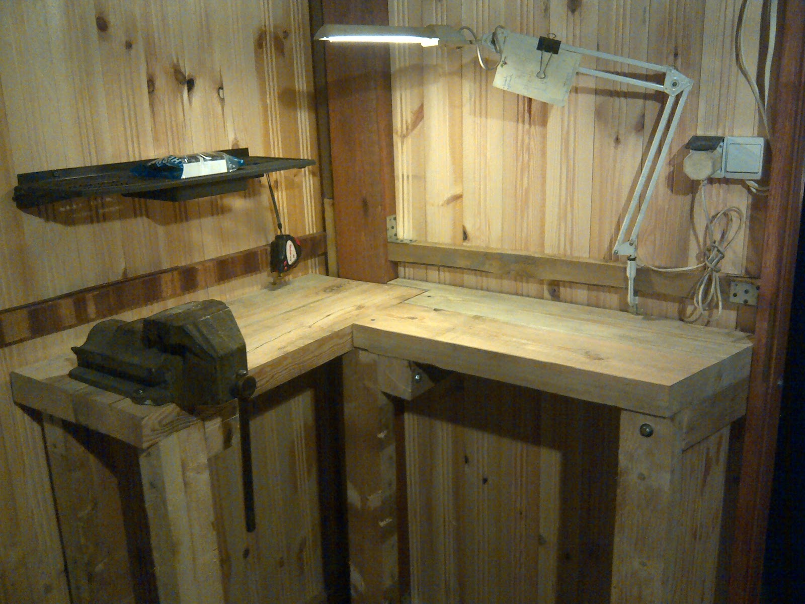 Przy drewutni mam komórkę na narzędzia ogrodnicze i różne szpargały. Tam też mam warsztacik do prac brudnych i tam mieszka imadło, szlifierka stołowa i takie tam.